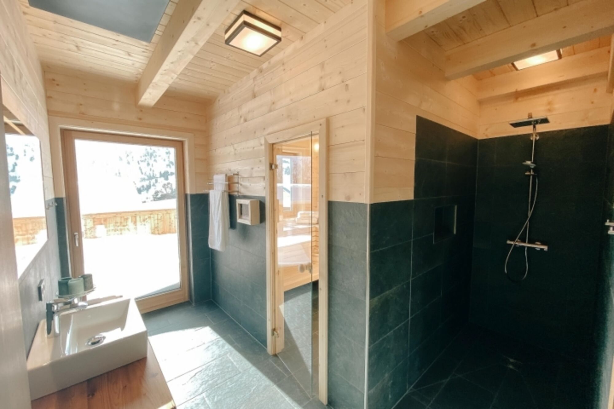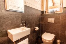 Das Chalet verfügen über 2 Bäder, jeweils mit offener Regendusche und hochwertiger Villeroy & Boch Ausstattung sowie über ein separates Gäste-WC. Sie haben die Wahl: machen Sie erst einen Saunagang und kühlen sich dann im Schnee ab, oder möchten Sie doch zuerst den HotPot auf der Terrasse einheizen und bei einem Glas Wein entspannen, während die Kinder in der Whirlpoolwanne ein Schaumbad nehmen? Oder möchten Sie lieber draußen den Außenkamin anheizen oder im Haus vor dem Kaminofen ein Buch lesen? Sie haben die Wahl und brauchen sich um nichts kümmern: Bettwäsche-, Handtücher und Endreinigung erledigen wir für Sie.