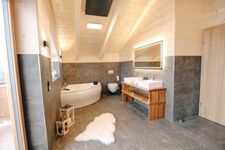 Das Chalet verfügt über 3 Bäder, jeweils mit offener Regendusche, WC und hochwertiger Villeroy & Boch Ausstattung und eines davon mit einer Whirlpoolwanne und Balkon. Sie haben die Wahl: machen Sie erst einen Saunagang und kühlen sich dann im Schnee ab, oder möchten Sie doch zuerst den HotPot auf der Terrasse einheizen und bei einem Glas Wein entspannen, während die Kinder in der Whirlpoolwanne ein Schaumbad nehmen? Oder möchten Sie lieber draußen den Außenkamin anheizen oder im Haus vor dem Kaminofen ein Buch lesen? Sie haben die Wahl und brauchen sich um nichts kümmern: Bettwäsche-, Handtücher und Endreinigung erledigen wir für Sie.