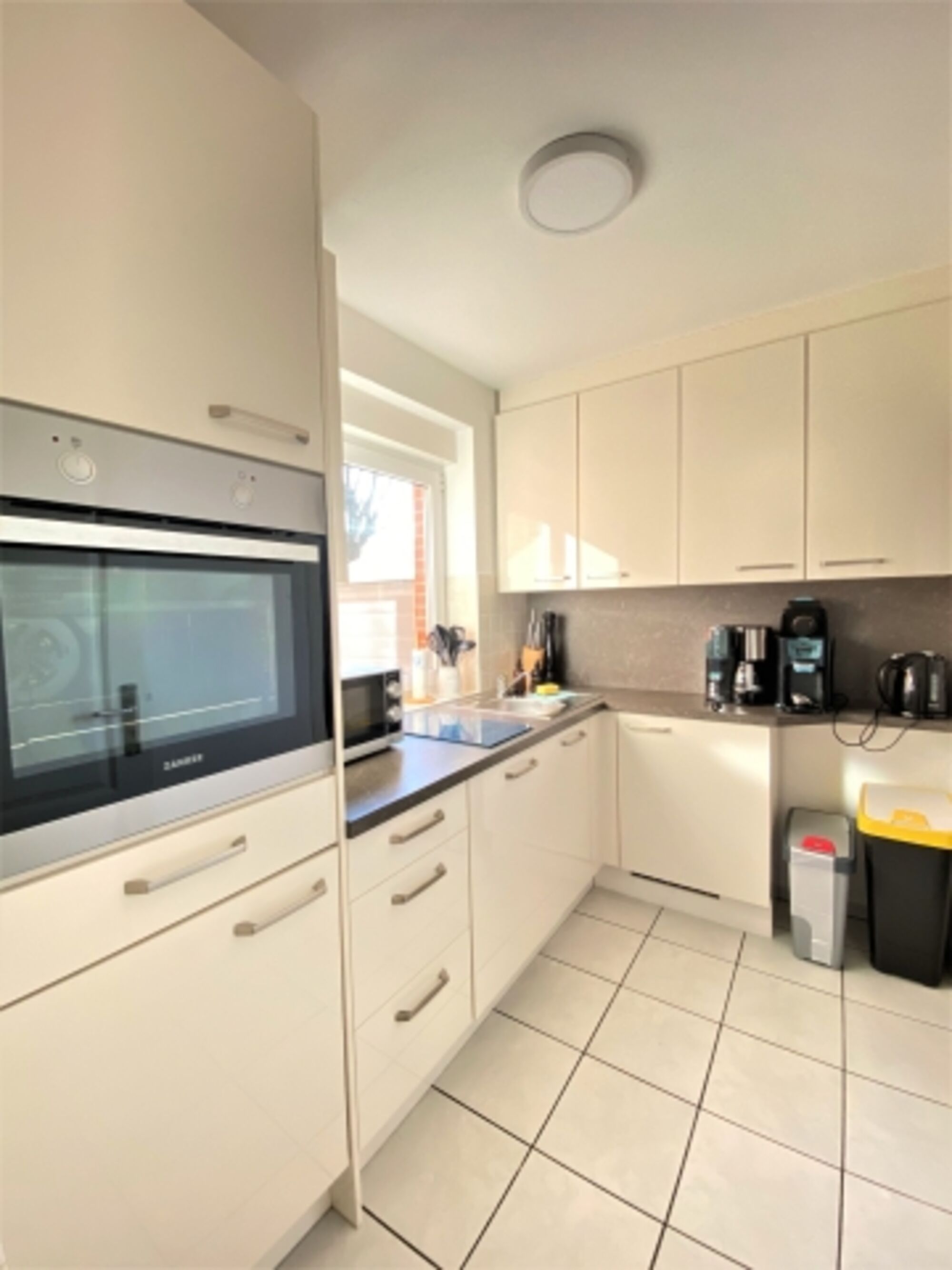 2-Platten Herd, Induktionsherd, Kühlschrank mit Gefrierfach, Senseo-Kaffeeautomat, Nespresso-Automat, Küchenmaschine, Mixer, Waffeleisen, Korkenzieher / Flaschenöffner, Gewürze (Salz, Pfeffer, Zucker), Öl / Essig, Mülltüten
