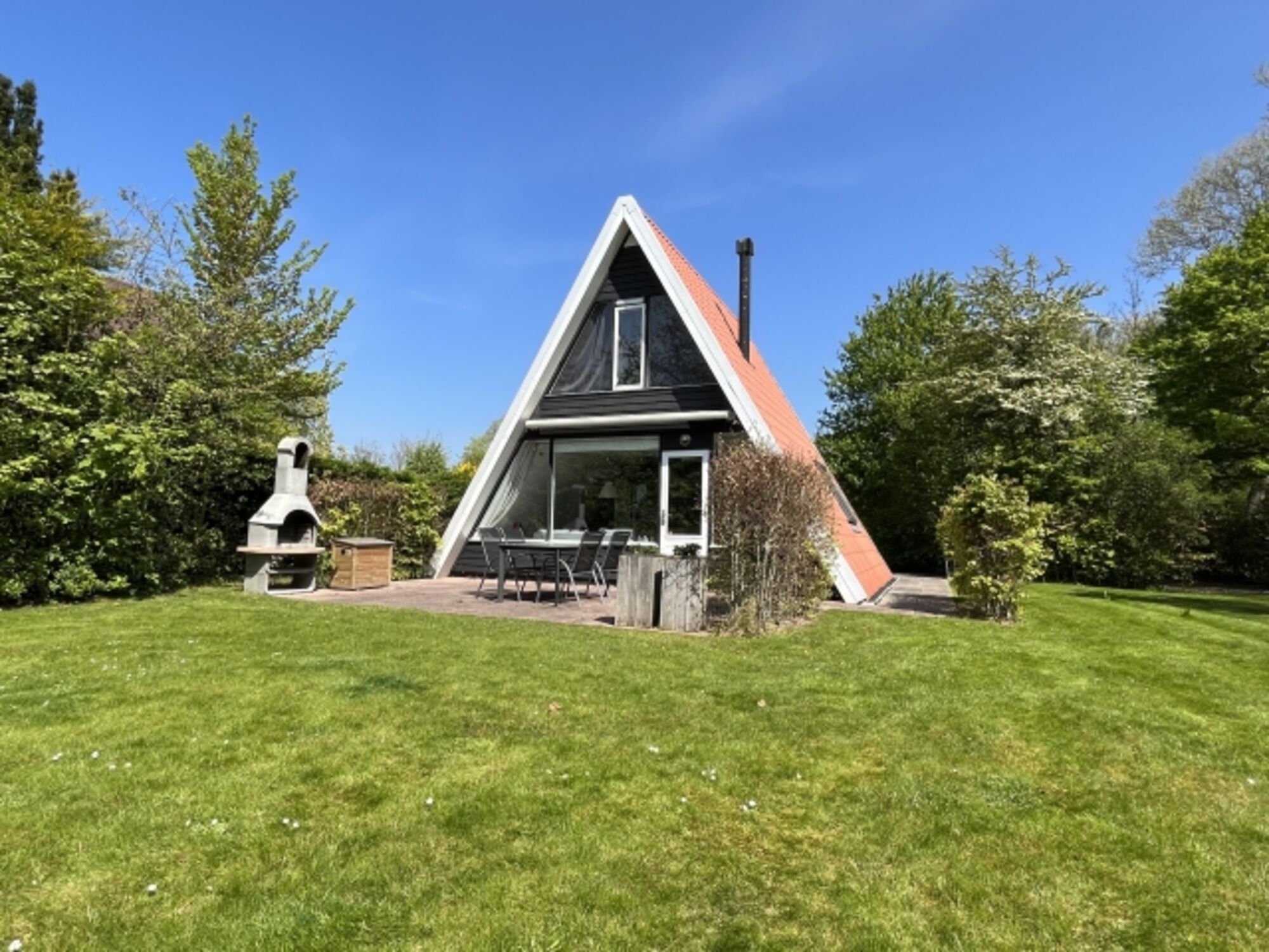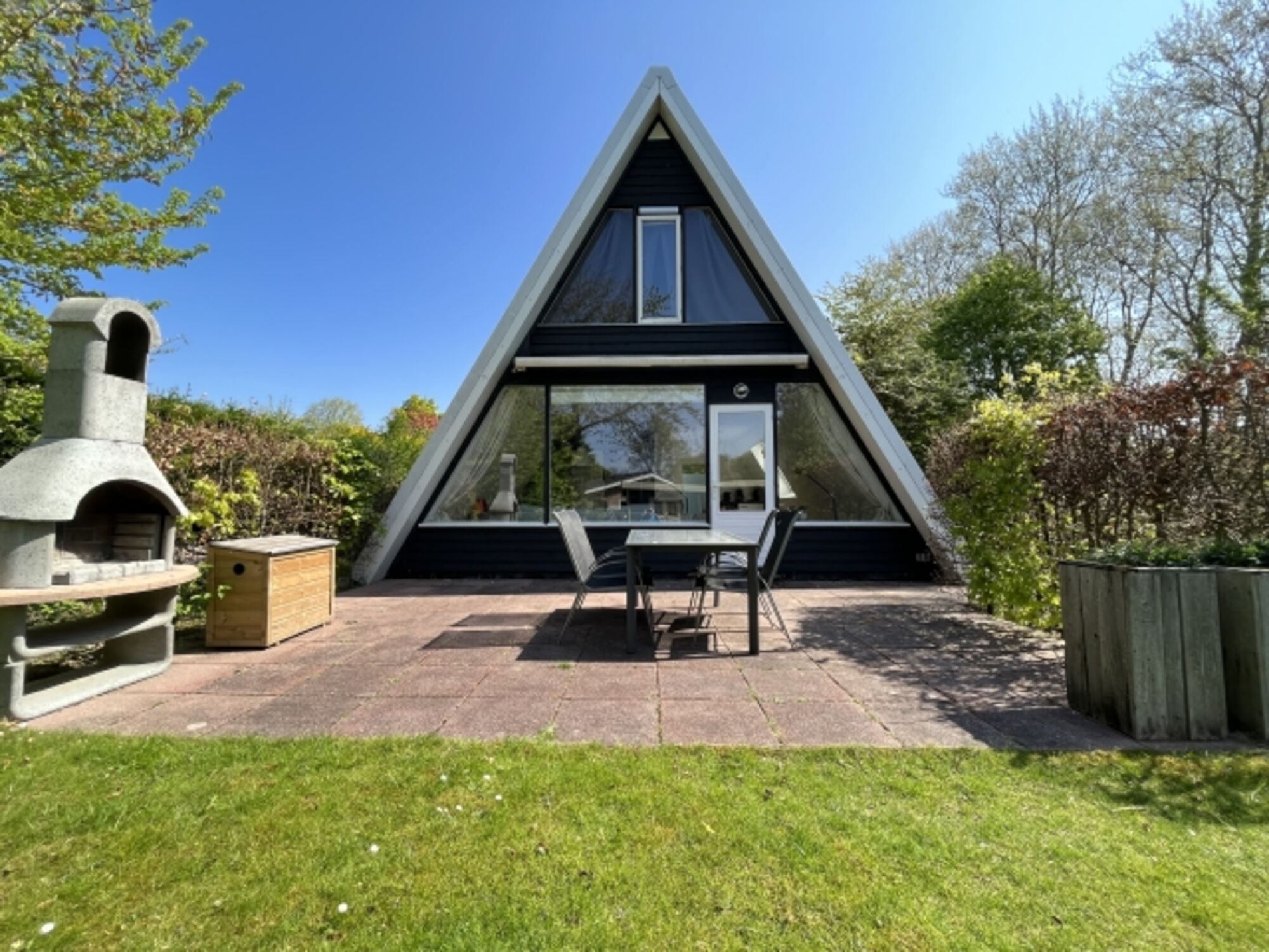 Das freistehende Haus bietet Platz für 4 Personen und befindet sich auf einem 800 m² großen Grundstück am Rande eines ruhigen Ferienparks.