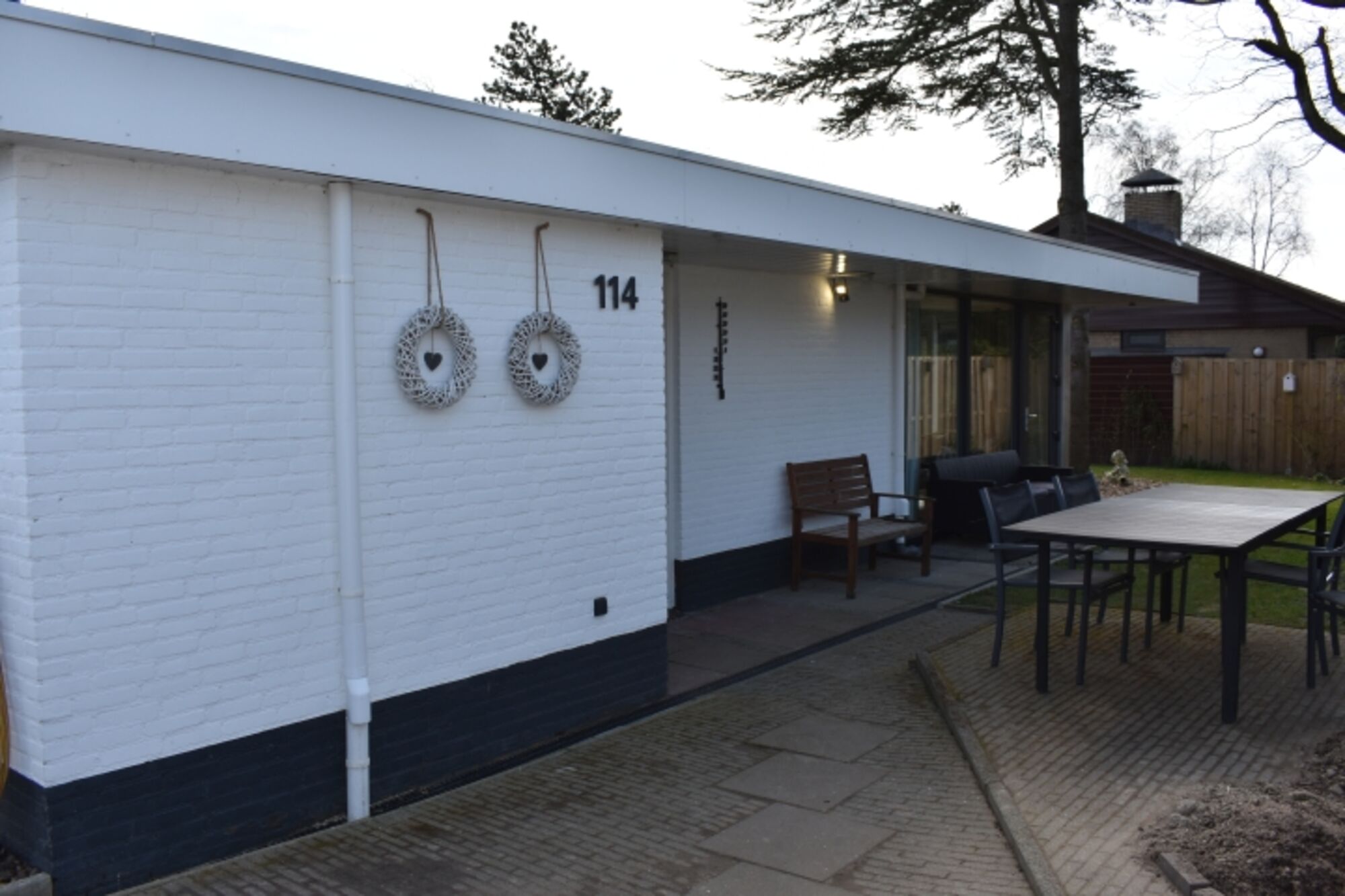 Mit drei komfortablen Schlafzimmern und zwei modernen Bädern bietet dieser Bungalow viel Platz für einen erholsamen Aufenthalt. Die breiten Türen, die großen Schiebetüren zur Terrasse und das angepasste Badezimmer machen das Haus auch für Rollstuhlfahrer geeignet.