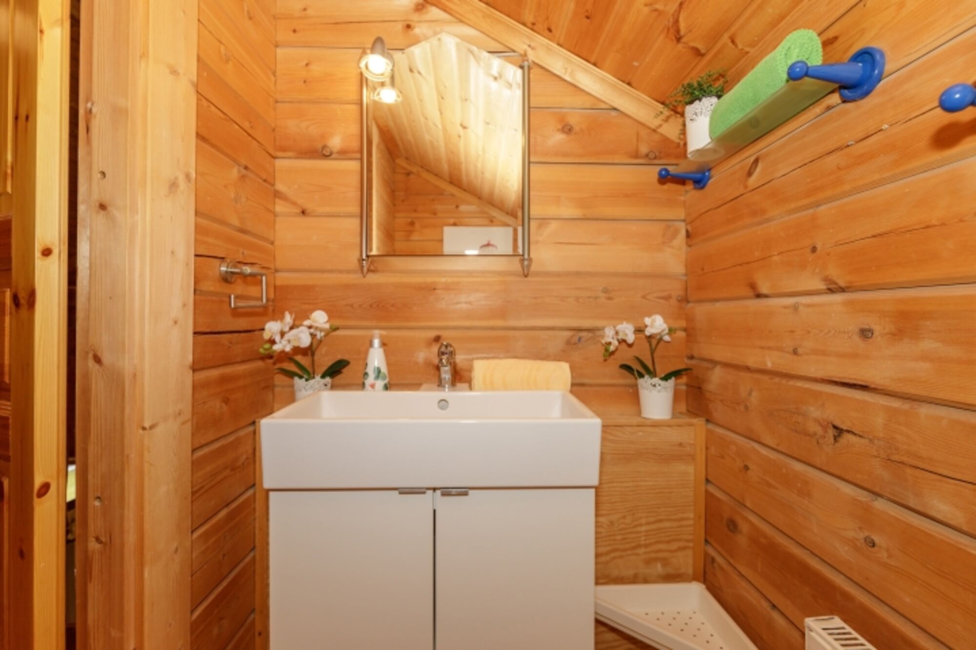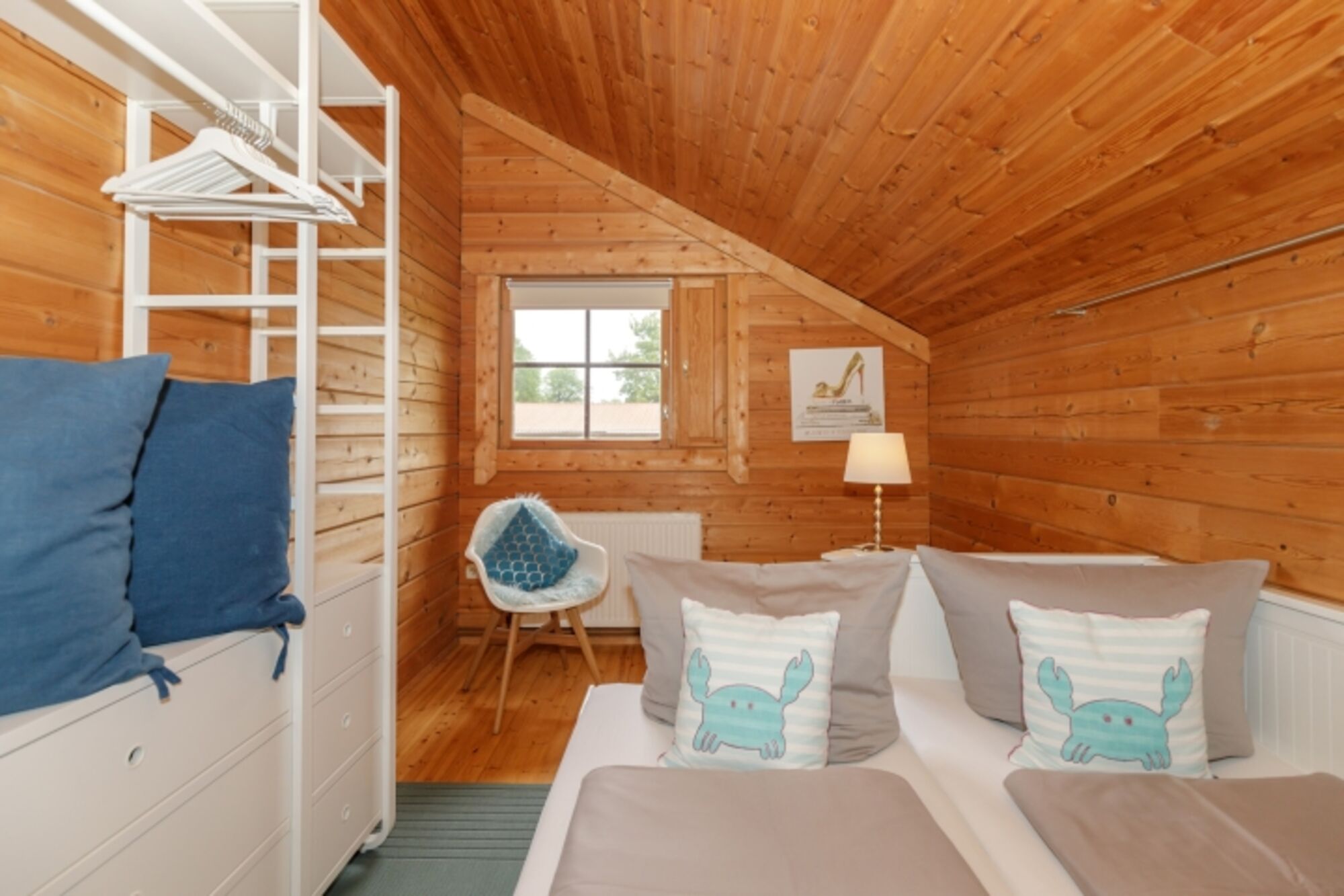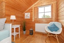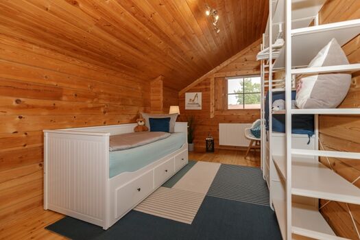 Das Holzhaus liegt in direkter, ruhiger Lage am Ortsrand vom Ostseebad Rerik. In wenigen Minuten erreichen sie fußläufig den Strand der Ostsee-Steilküste. Das Haus wurde mit viel Liebe zum Detail eingerichtet und bietet Platz für bis 6 Personen zzgl. Kleinkind. Im Erdgeschoss befindet sich das Schlafzimmer mit Doppelbett 180x200 cm, ein im Jahr 2021 renoviertes Bad mit großer Dusche, Badewanne und 2 Waschbecken und eine separate Toilette mit Bidet und Waschbecken. Weiterhin befindet sich dort ein großzügiger Wohn-Essbereich mit offener, voll ausgestatteter Küche, großem Esstisch und gemütlicher Sitzecke mit Flachbild-TV und eine nach Süden ausgerichtete Holzterrasse mit weiterer Sitzgelegenheit und Sonnenschirm. Im HW-Raum befinden sich eine Waschmaschine, ein Trockner und ein großer Kühlschrank mit Gefrierfach. Neben dem Gartenhäuschen befindet sich eine Holzsauna mit Ruhebereich. Vom großen Flur erreichen Sie über eine leicht geschwungene Treppe die 2. Ebene des Hauses. Für kleine Gäste ist die Treppe mit einem Gitter versehen.