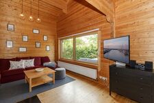Bettwäsche, Handtücher, Bademantel und Saunahandtücher können auf Wunsch dazu gebucht werden. WLAN steht Ihnen während des Aufenthaltes kostenfrei zur Verfügung. Durch das große Grundstück gibt es mehr als 3 PKW-Stellplätze. Fahrräder können sicher und regengeschützt im Carportbereich untergestellt werden. Kleine bis mittelgroße, gut erzogene Hunde (max. 2) sich herzlich willkommen. Da es sich um ein Holzhaus handelt, welches nachhaltig und klimaneutral gebaut wurde (Holz wächst nach und speichert Kohlendioxid), darf aus versicherungstechnischen Gründen nicht im Haus geraucht und mit Holzkohle gegrillt werden. Ein Elektrogrill steht Ihnen zur Verfügung.