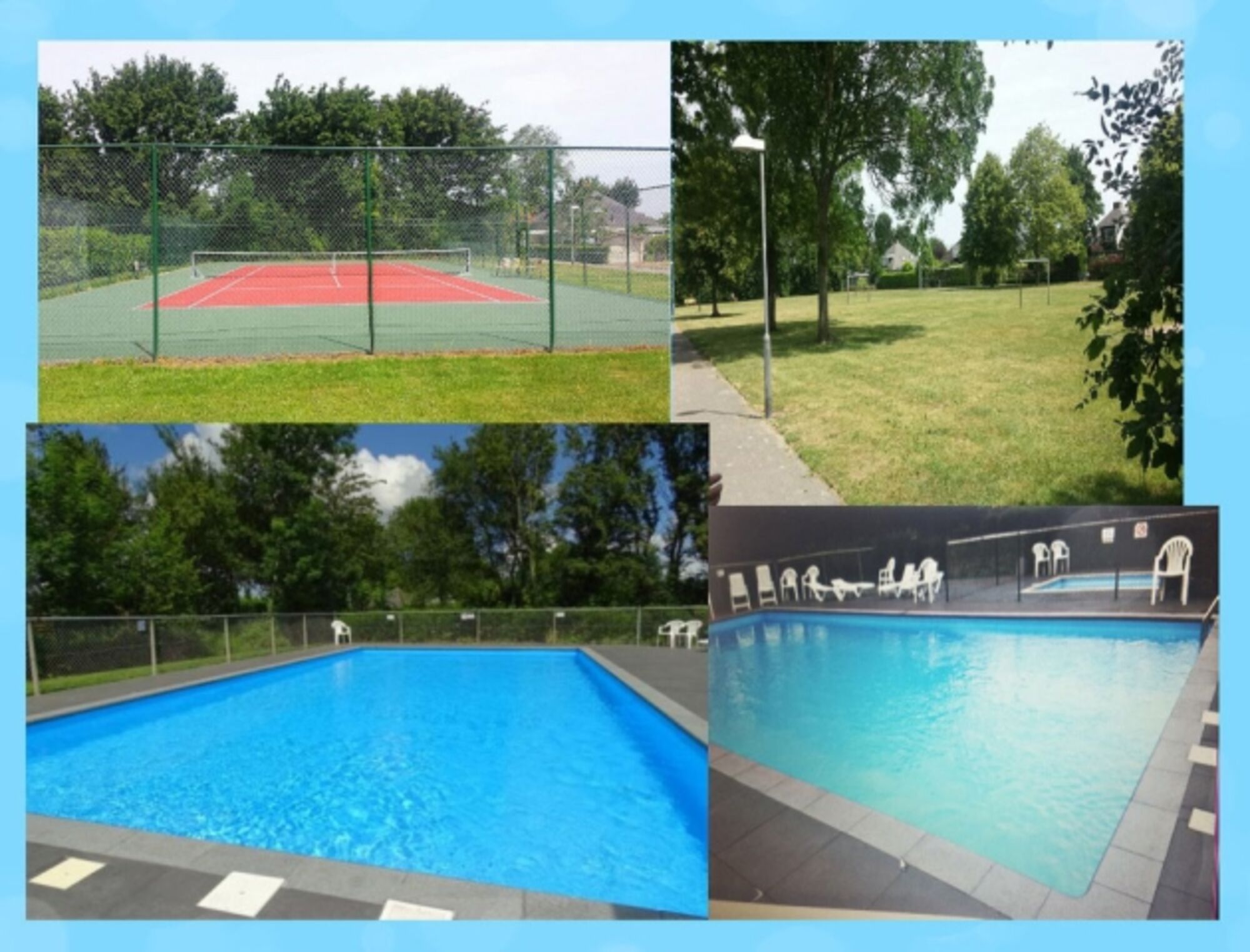 ☼ Die Anlage der Ferienhaussiedlung mit Pool (Schwimmer und Kinderbecken) , Tennisplatz , Spielplatz/Spielwiesen mit Toren/Netzen darf von unseren Gästen gerne genutzt werden