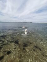 Kleiner Sandstrand für wasserbegeisterte Hunde geeignet