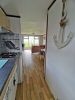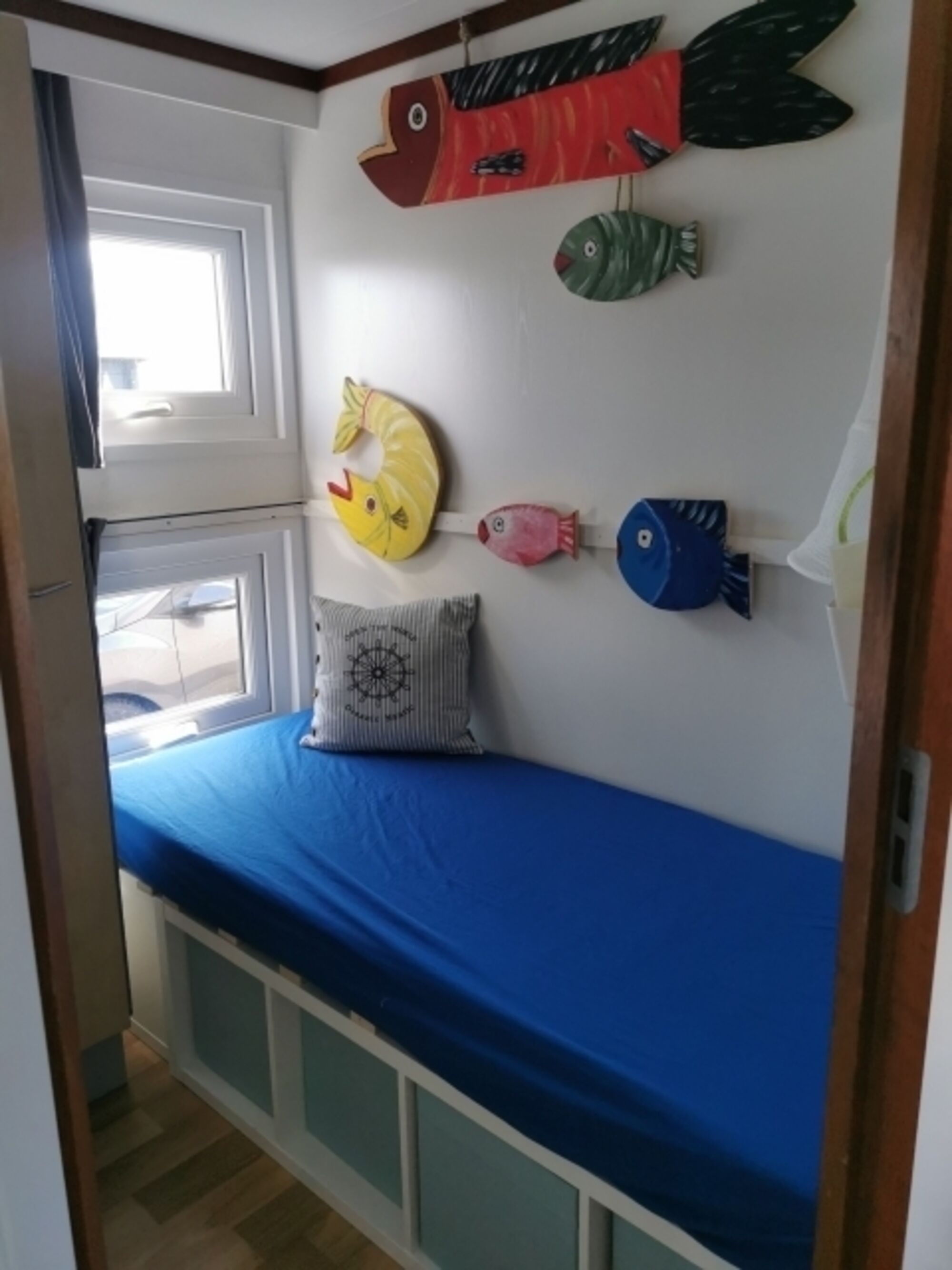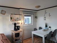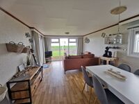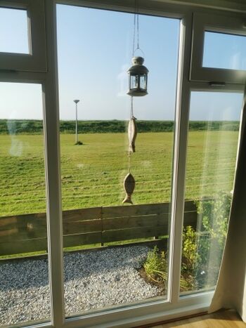 Auch die Sonnenuntergänge sind immer wieder schön zu sehen. Es ist ein Naturschauspiel die vielen Vogelschwärme in dem Watt zu sehen... herrlich! Ihre Fellnase und Sie werden die Spaziergänge geniessen. Und diese Ruhe einfach genial. Überzeugen Sie sich selber! Das Chalet ist mit viel Liebe und hell, maritim eingerichtet. Es gibt ein Kinderzimmer, Schlafzimmer und das gemeinschaftliche Wohnzimmer mit Zugang zur Terrasse, die umzäunt ist mit einem hohen Windschott aus Glas.