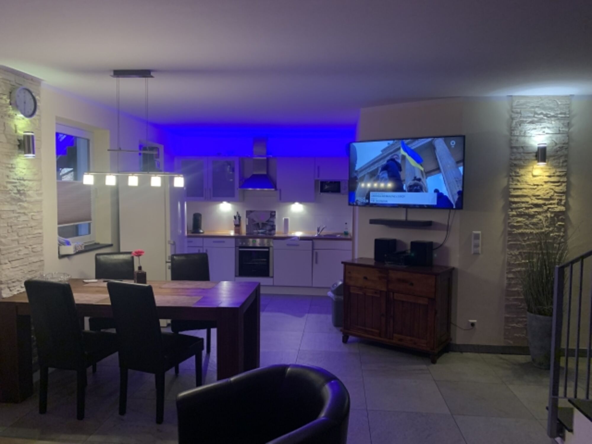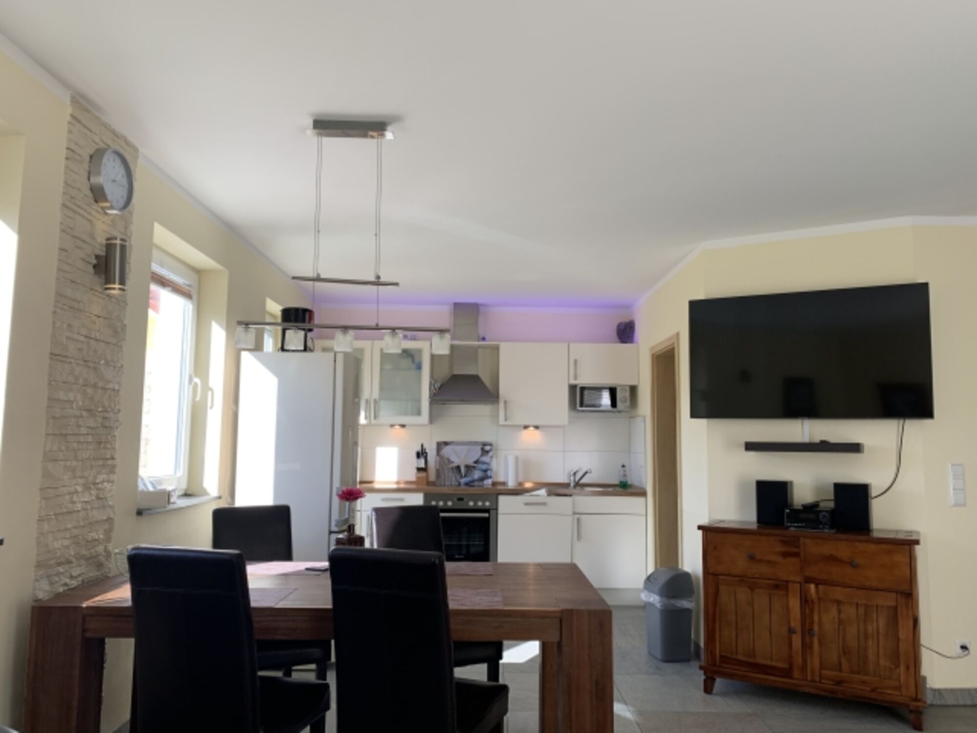 Im Erdgeschoss erwarten Sie ein großer Wohn-Essbereich mit bequemen Polstermöbeln, Sat-TV, Kaminofen u. ein massiver Esstisch. Der angrenzende offene Küchenbereich ist mit allen erforderlichen Küchengeräten und -utensilien ausgestattet. Außerdem im EG ein Tageslichtbad mit bodengleiche Dusche u. Infrarotkabine.
