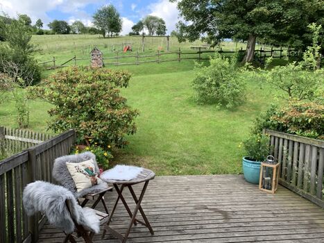 Von der Wohnung aus kann man direkt in den Garten gehen wo eine Feuerstelle zum Stockbrot backen einlädt.