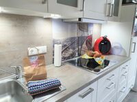 Cerankochfeld, Kühlschrank mit Gefrierfach, Essplatz in der Küche, TV in der Küche