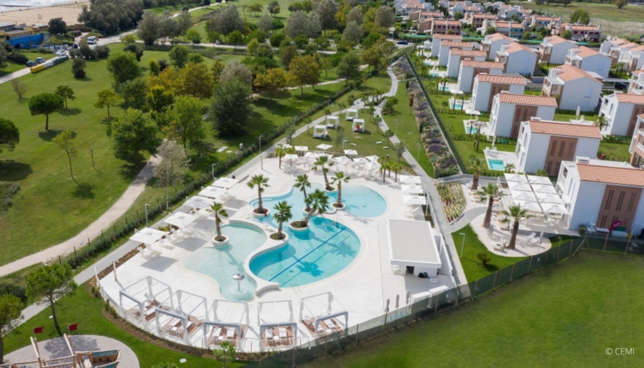 Nur 5 km von Caorles Zentrum entfernt, befindet sich das Beach Resort in einer Top-Lage - verkehrsberuhigt und mit direktem Zugang zum Meer. In direkter Nähe zum Resort befindet sich ein Supermarkt (300 m), das Strandrestaurant Baia Blu (150 m), der Golfplatz Pra’ delle Torri (3 km), das Thermalbad "Bibione Thermae" (47 km) sowie das Fashion Designer-Outlet „Noventa di Piave“ (35 km). Nahe gelegene Metropolen und Sehenswürdigkeiten: Venedig (60 km), Prosecco-Hügel (80 km), Triest (110 km).