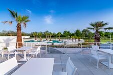 Der Weg zum Strand führt nur wenige Schritte durch die parkähnliche Grünfläche der Küstenschutzzone. In der Hochsaison stehen den Gästen am Strand Sonnenliegen und -schirme zur Verfügung. Eine ca. 400 m² große Poollandschaft (inkl. Dusche & WC im Poolbereich) mit einem großen Schwimmbecken (max. 135 cm tief), einem Kinderbecken (max. 60 cm tief) und eine Poolbar mit Lounge sorgen auch im Resort für Erfrischung.