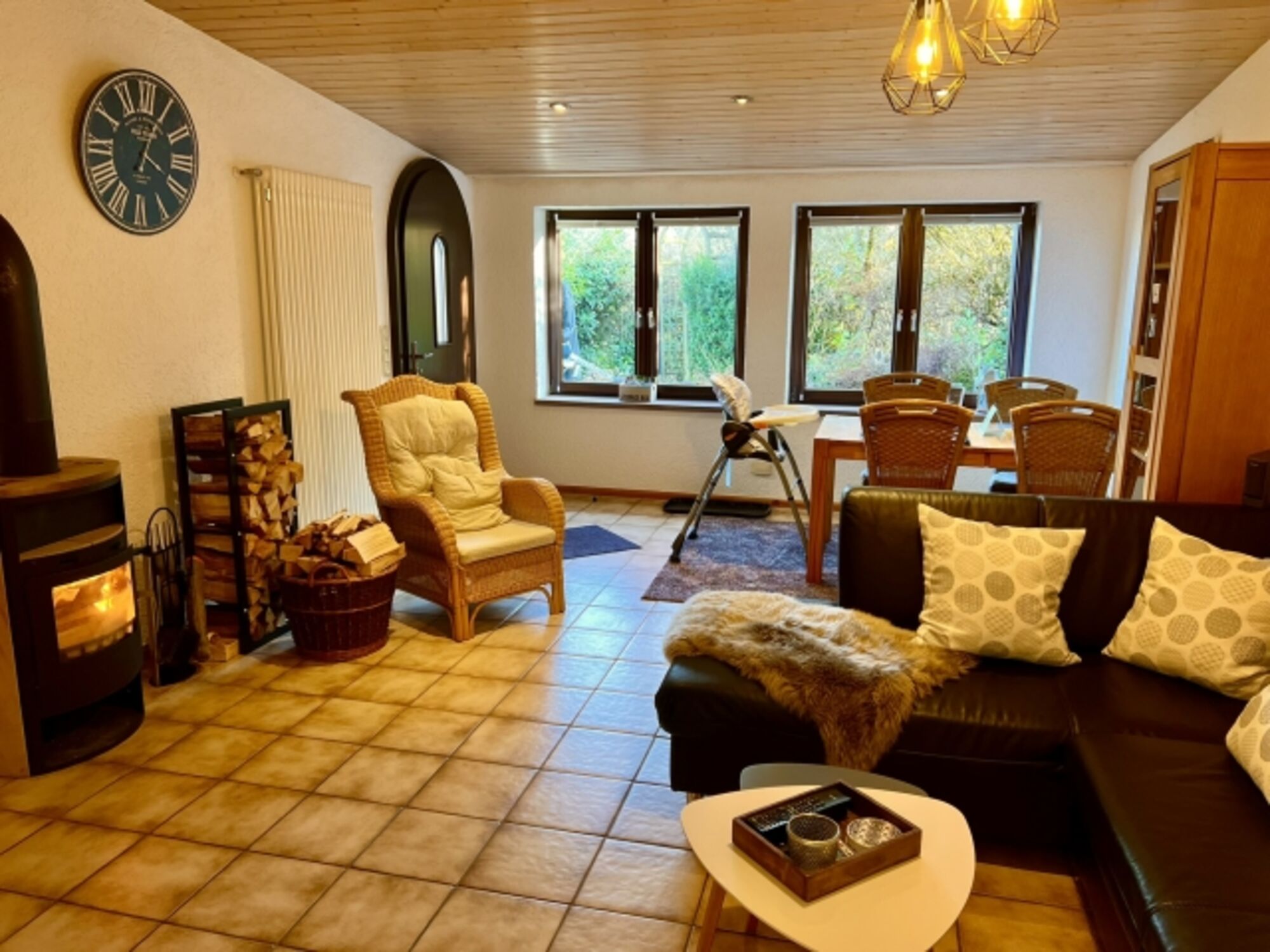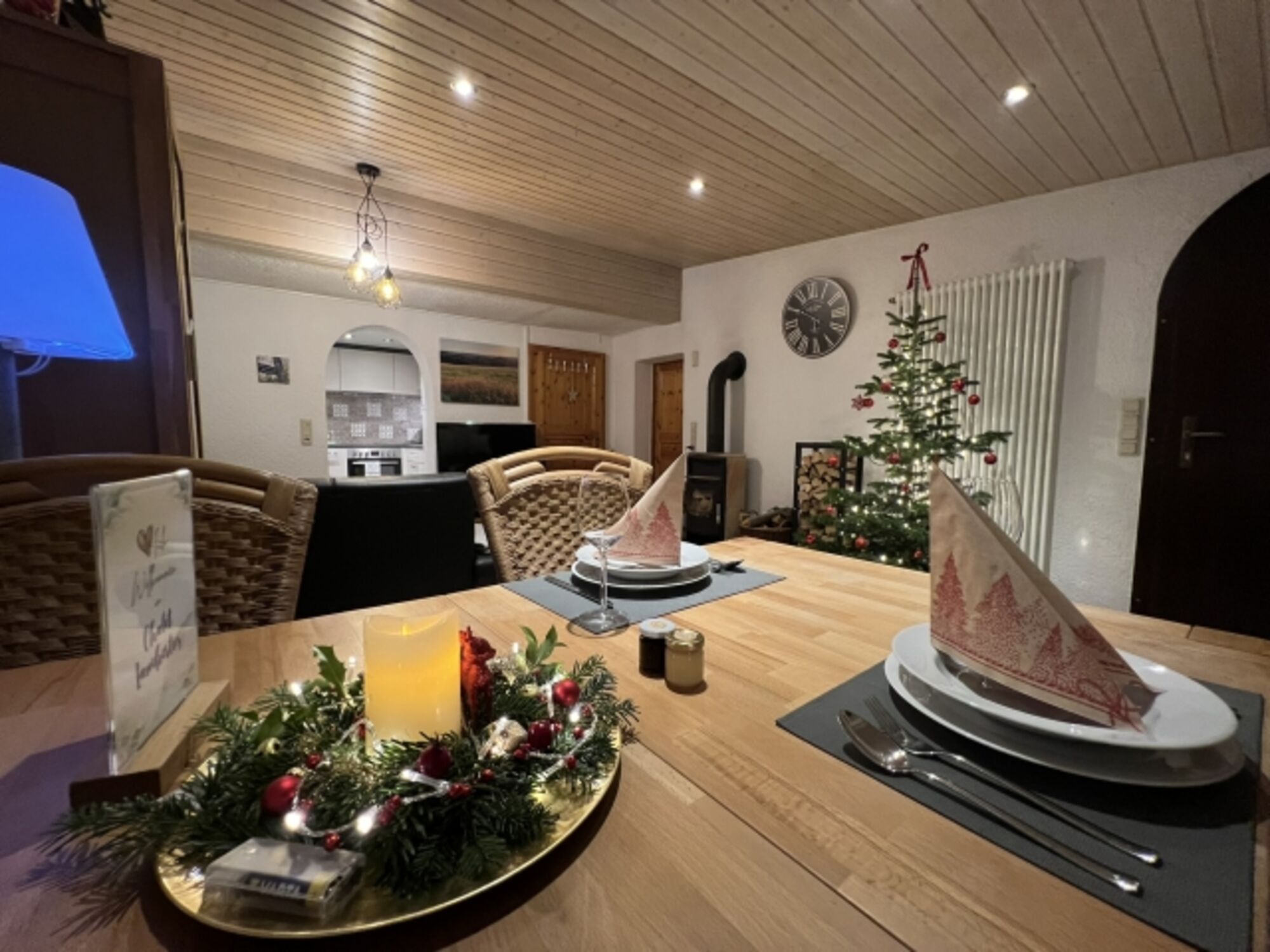 Die Wohnung verfügt über 6 Schlafplätze, ein Bad mit Dusche und eine vollausgestattete Küche, eine Terrasse, kostenfreies Wlan, Smart-TVs mit Satellitenfernsehen, 5.1 Heimkinoanlage, Spielekonsole, Zentralheizung und einen Kaminofen mit kostenfreiem Brennholz für gemütliche Abende vorm wärmenden Kaminfeuer.