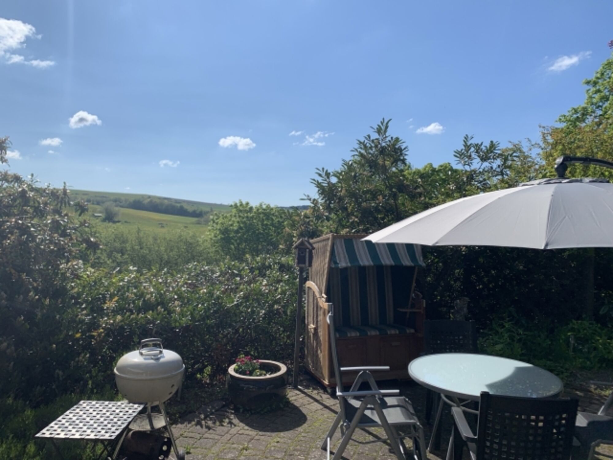 Liegewiese, Strandkorb, Gartenmöbel, Kohlegrill, Holzgrill