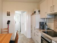 Cerankochfeld, Dunstabzugshaube, Kühlschrank mit Gefrierfach, Senseo-Kaffeeautomat, Mixer, Korkenzieher / Flaschenöffner, Gewürze (Salz, Pfeffer, Zucker), Geschirrhandtücher, Essplatz in der Küche