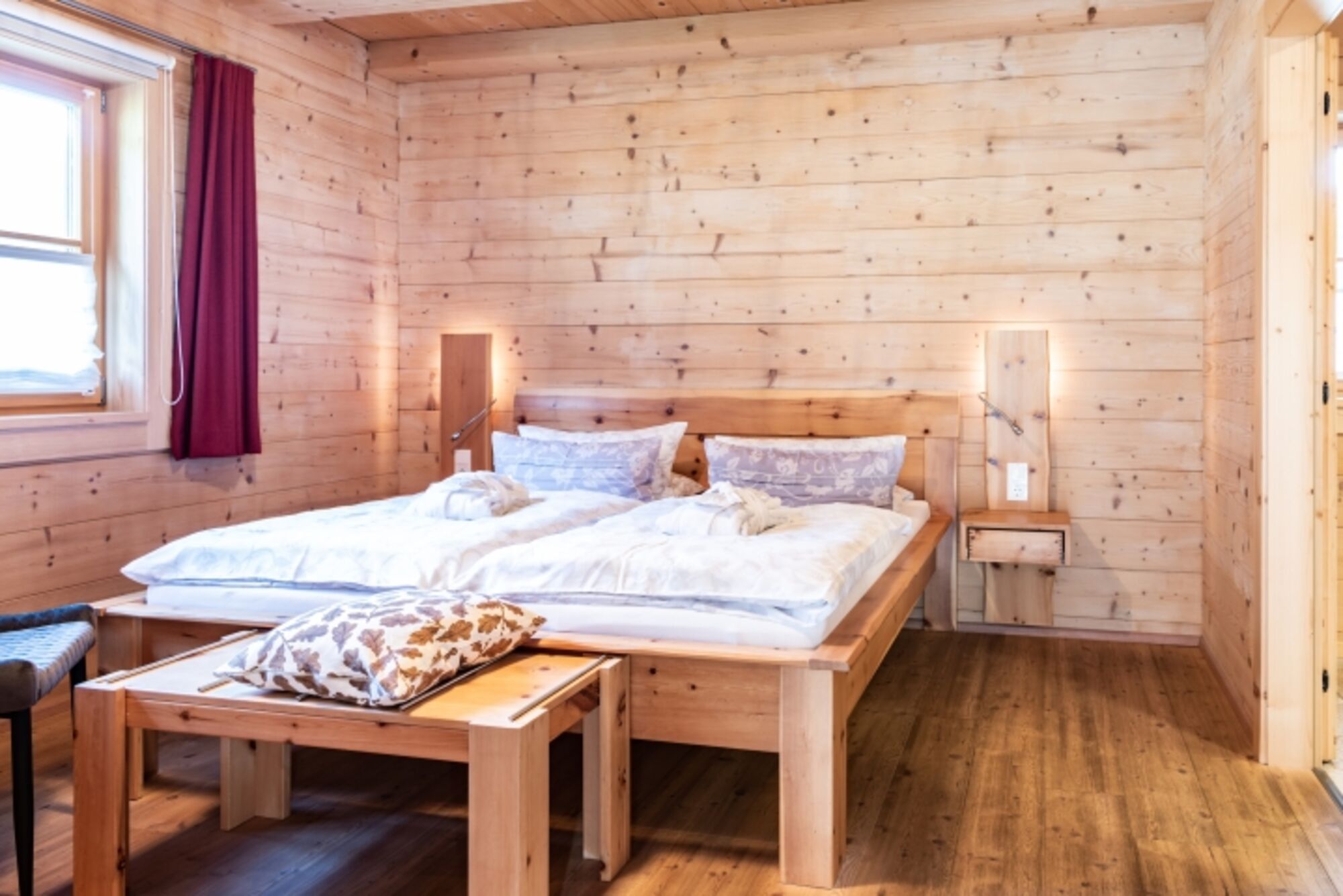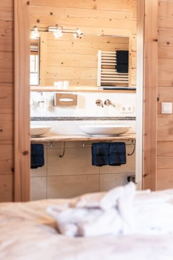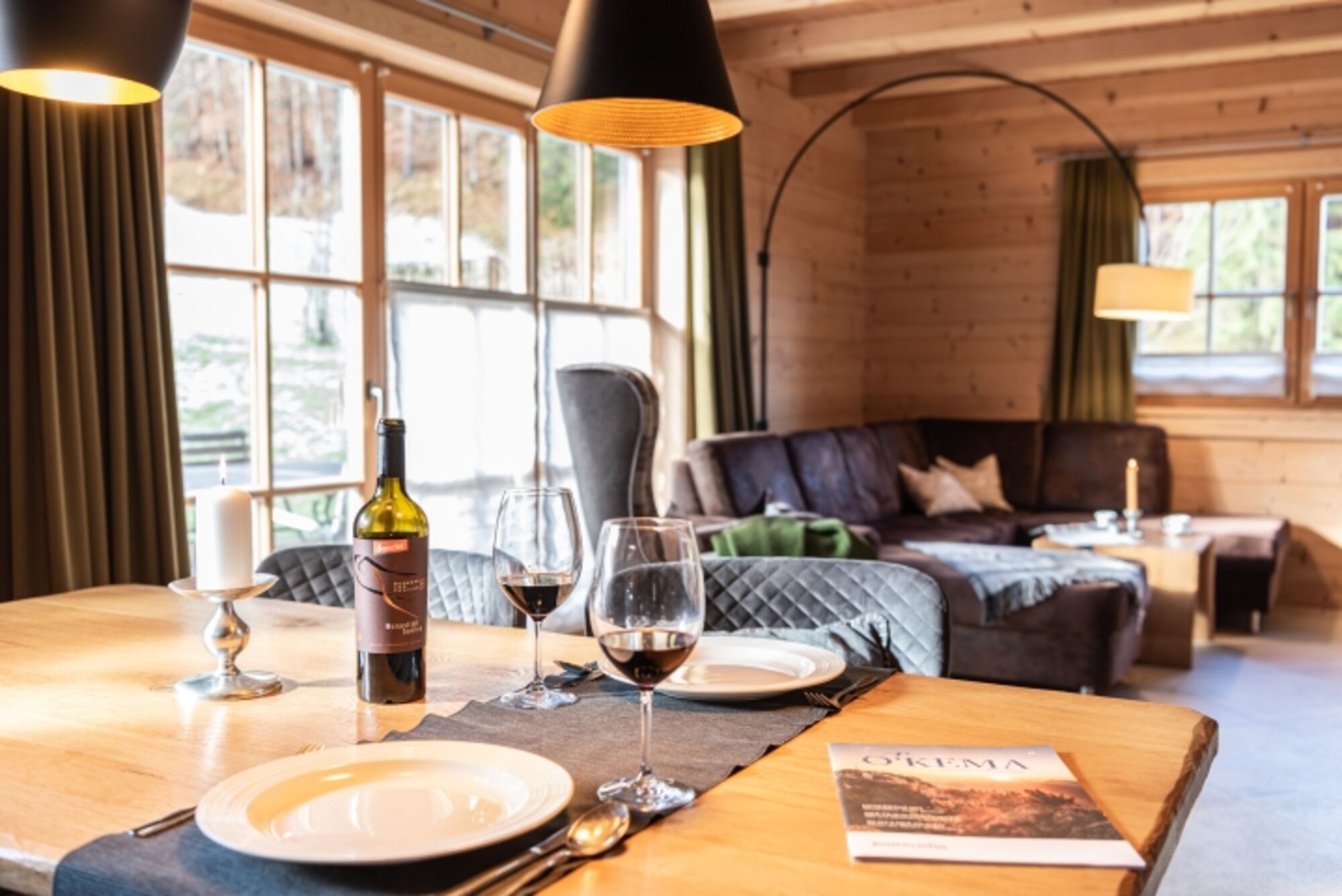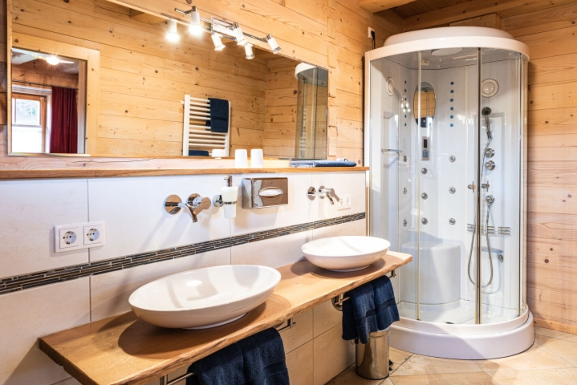 Naturnahe Bauweise, ein gehobenes Maß an Komfort und Behaglichkeit bilden eine einmalige Symbiose. Machen Sie es zu Ihrem Refugium! Außen rustikale Almhütte, empfängt Sie innen moderne Eleganz mit urigen Elementen. Die Schlafzimmer mit Möbeln aus Zirbenholz tragen zu einem erholsamen Schlaf bei. Zirbenduft schafft Behaglichkeit, stärkt die Lebensenergie und Erholungsfähigkeit. Das en Suite Badezimmer mit Dampfdusche lässt keine Wünsche offen. Das weitere Doppelzimmer verfügt ebenfalls über ein eigenes Badezimmer. Der kombinierte Wohn-, Ess- und Kochbereich erstreckt sich über rund 40 qm und ist mit allem was das Herz begehrt ausgestattet. Ausreichend Sitzgelegenheiten stehen natürlich zur Verfügung. Eine großzügige Südwestterrasse mit einem ganzjährig nutzbaren Jacuzzi / Outdoor Whirlpool lässt Sie entspannen. Oder beschließen Sie einen kalten Wintertag am gemütlich prasselnden Kaminfeuer.
