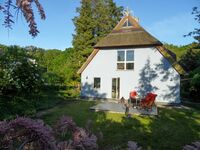 In wunderschöner Lage zwischen Schmollensee und Buchenwald empfängt Sie das Ferienhaus Falkenblick. Hier fühlt sich wohl, wer die Ruhe und Natur sucht, ohne auf Komfort verzichten zu müssen. Das Reetdachhaus steht auf einem weitläufigen Grundstück mit altem Baumbestand. Innen überzeugt die Großzügigkeit des Hauses: über mehrere Etagen verteilt laden drei separate Schlafzimmer auch tagsüber zum Verweilen ein. Erwähnenswert ist die perfekt ausgestattete Küche, die bereits als Kulisse für eine Fernsehkochsendung diente. Gegessen wird im 'Falkenblick' im Wintergarten, von dem man aus einen herrlichen Blick in den Garten genießen kann. Den Urlaubsabend lässt man gemütlich auf der schönen Süd-West-Terrasse ausklingen. Auf dem eingezäunten Grundstück sind Hunde nach Rücksprach herzlich willkommen!