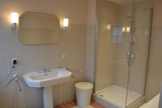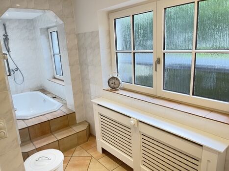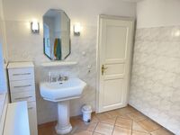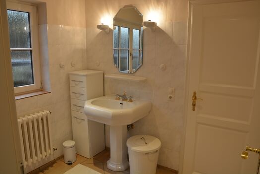 Gäste WC ist separat im 1.OG und zusätzlich auch im EG (sowie im Souterrain), es gibt also zwei Bäder und drei separate WCs Waschbecken