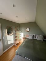 Schreibtisch Doppelbett 1,80 x 2,00m, Kommode, Spiegel, Leselampe am Bett