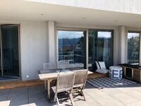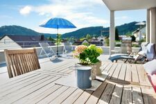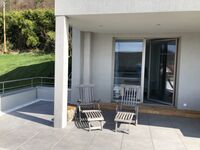 Die komfortable Ferienwohnung bietet mit einer 60 Quadratmeter große Terrasse Richtung Süden mit ‘Seeguck‘ (ein bisschen Seesicht zwischen den Büschen hindurch) einen Rückzugsort der besonderen Art. Die Terrasse steht exklusiv nur den Gästen von „SeeZeichen-Apartment No. 26“ zur Verfügung und bietet mit ihrer Einfriedung durch eine kleine Mauer und einer Abtrennung aus Segeltuch zur nächsten Ferienwohnung Privatsphäre und Schutz.