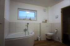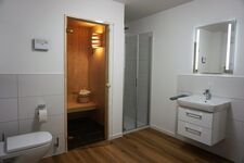 An stürmischen und/oder regnerischen Tagen kann das Badezimmer mit eigener Sauna und seiner Vollausstattung schnell zum Wellnesstempel werden.