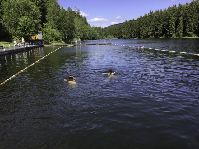 Die Wohnung befindet sich am Waldrand. Direkt durch den Wald erreicht man nach 1. Km den Badesee "Kuttelbacherteich".