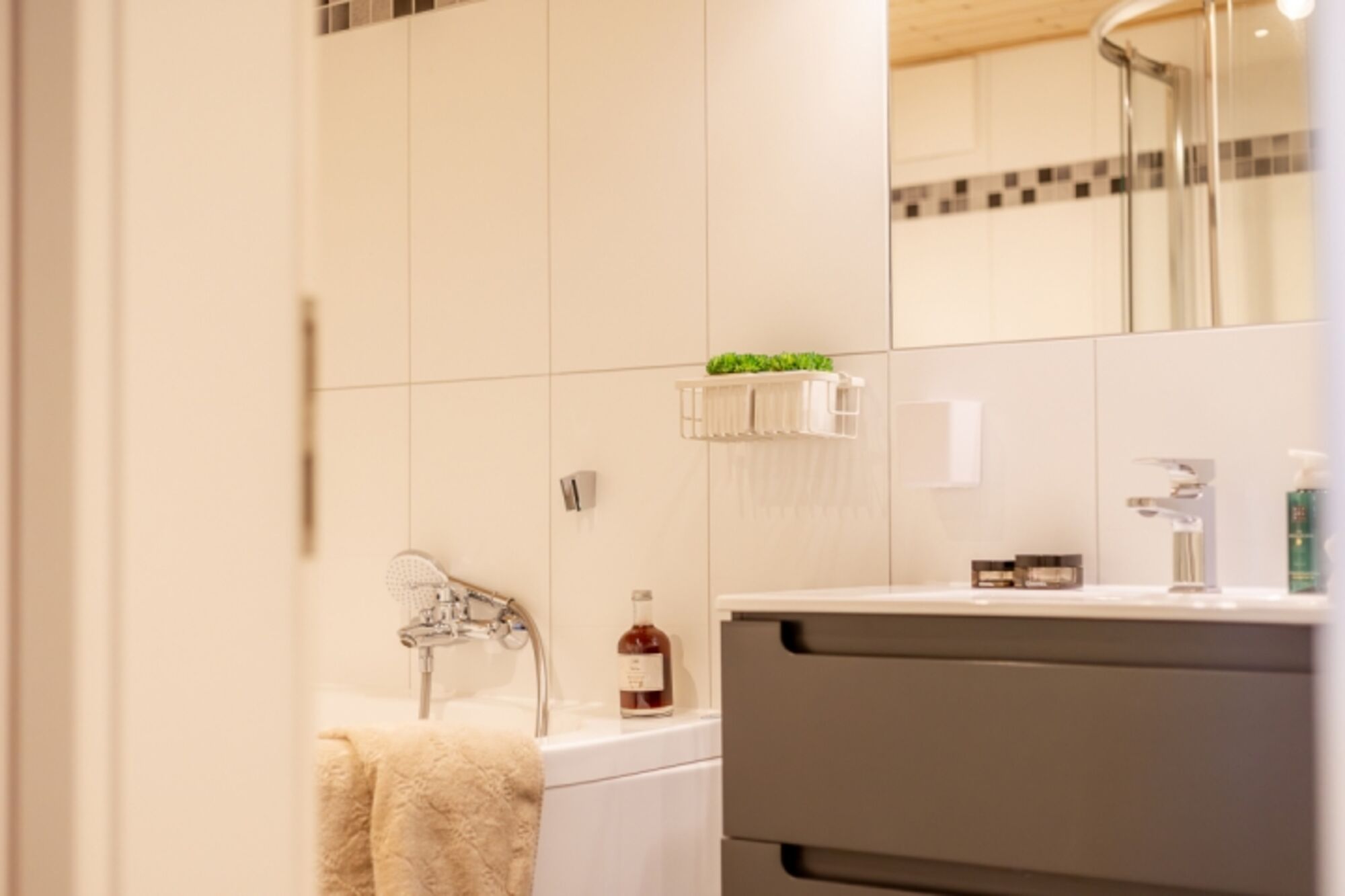 Badewanne mit Whirlpool, Waschbecken, Spiegel