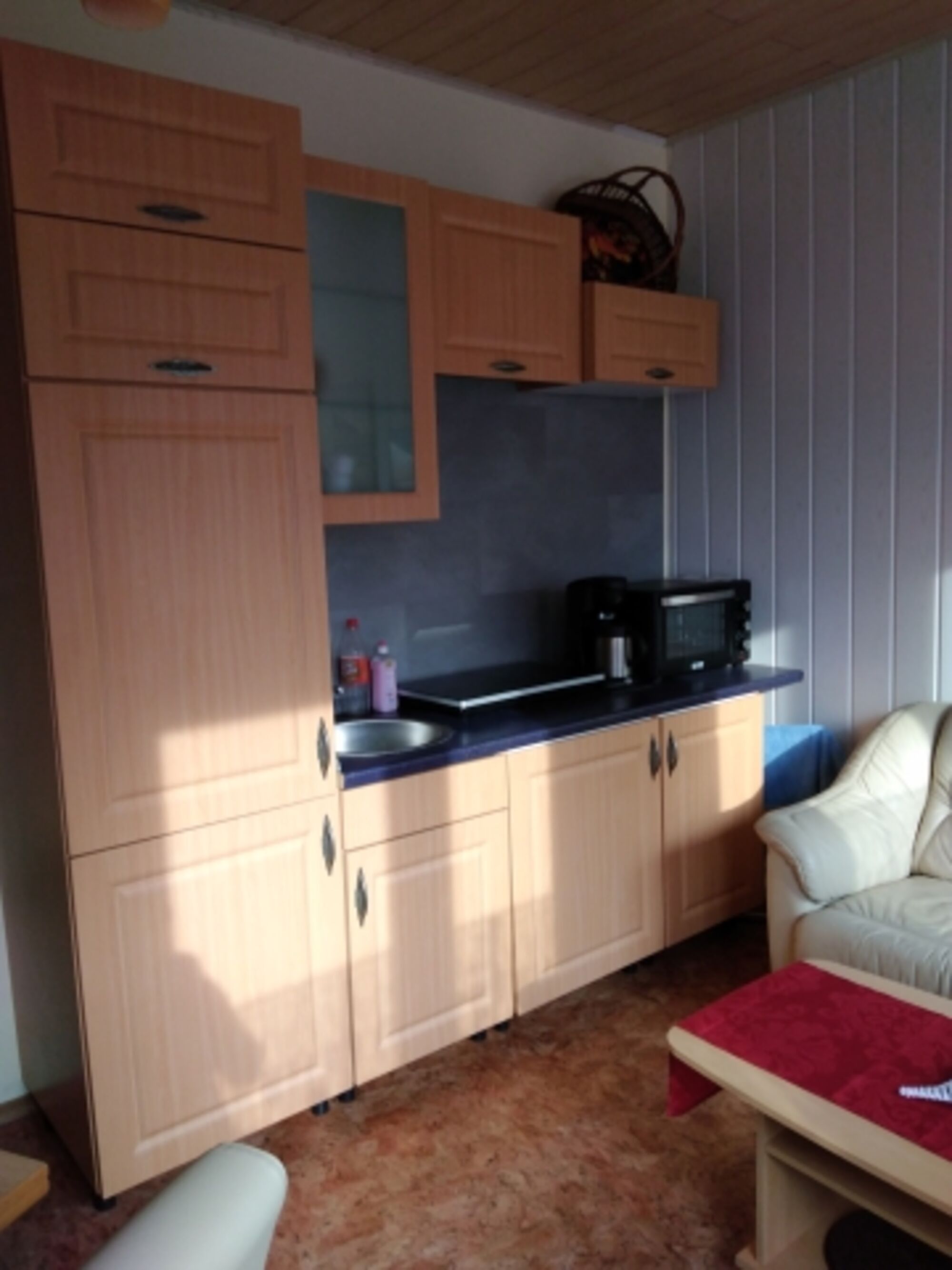 2-Platten Herd, Gefrierschrank, Korkenzieher / Flaschenöffner, Gewürze (Salz, Pfeffer, Zucker), Geschirrhandtücher, Mülltüten, Essplatz in der Küche, TV in der Küche