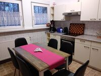 4-Platten Herd, Dunstabzugshaube, Kühlschrank mit Gefrierfach, Eierkocher, Korkenzieher / Flaschenöffner, Gewürze (Salz, Pfeffer, Zucker), Geschirrhandtücher, Mülltüten, Essplatz in der Küche