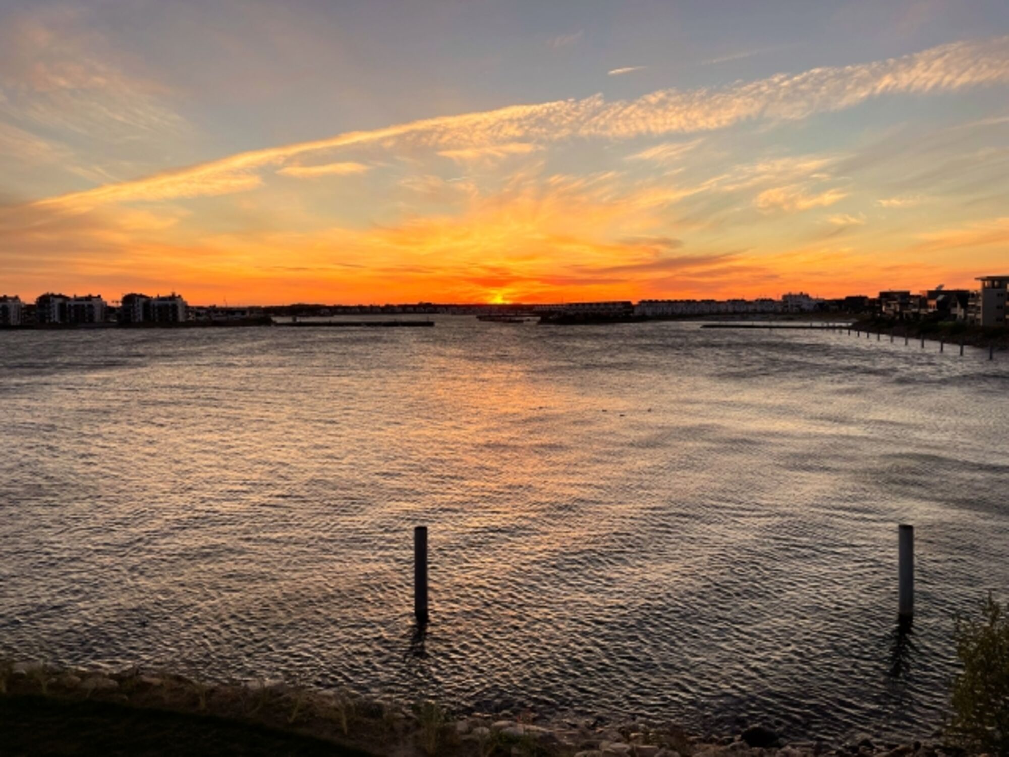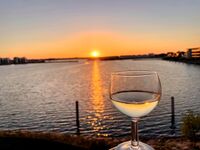 Traumhafte Sonnenuntergänge und Schweinswale zusammen mit unseren Hunden vom eingezäunten Balkon beobachten.
