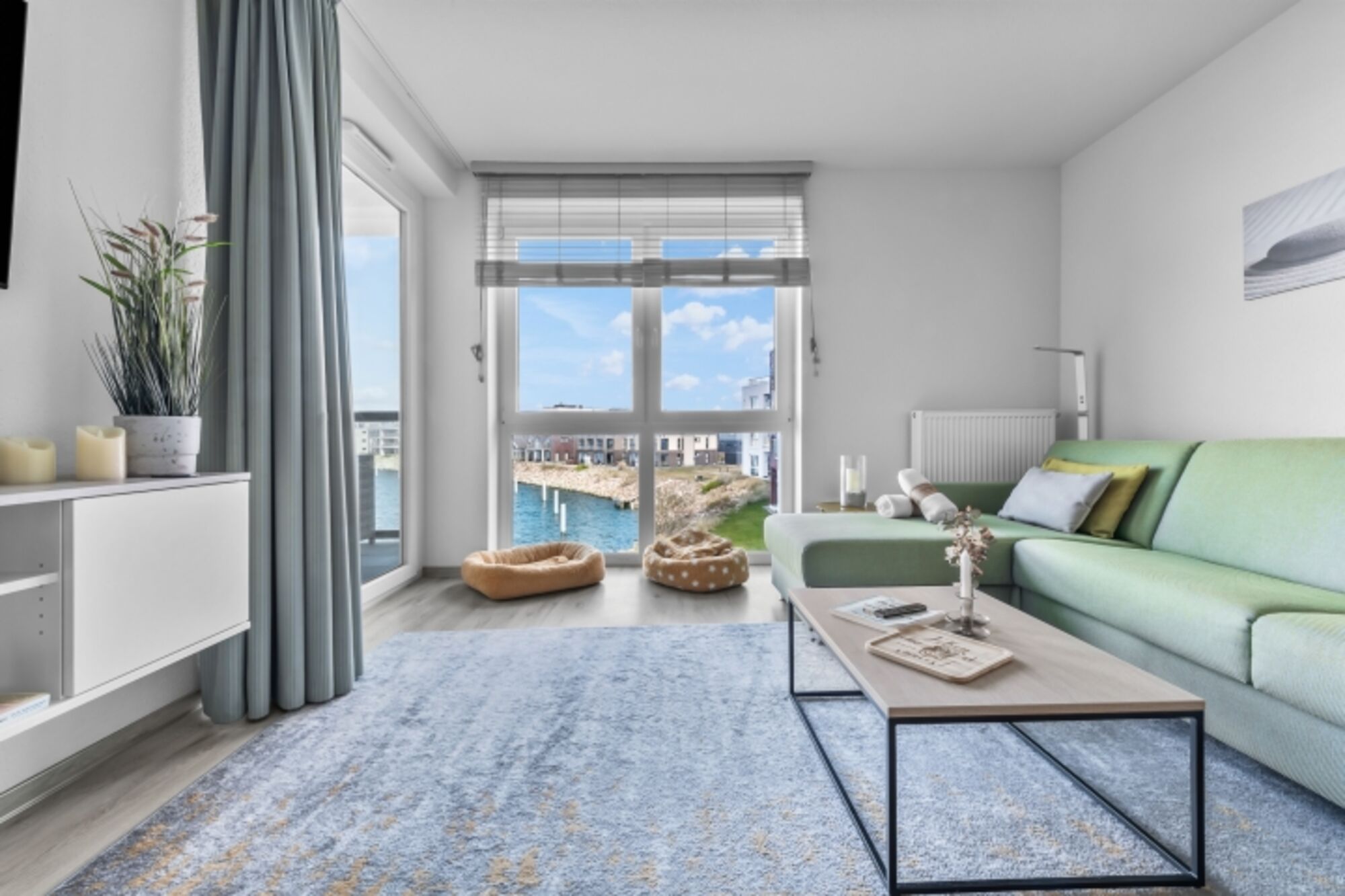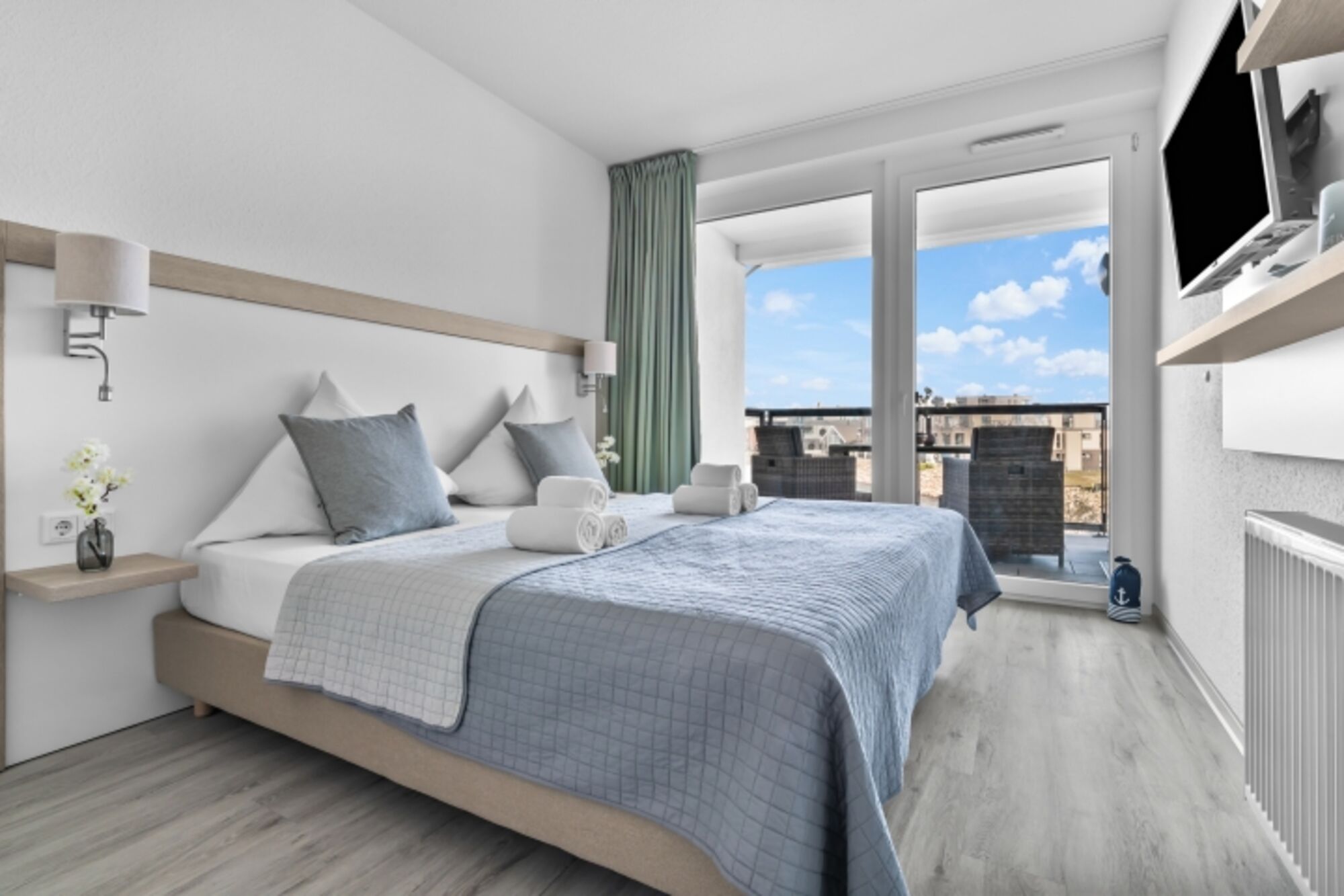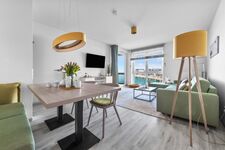 Die Wohnung ist für bis zu 3 Personen geeignet, ideal jedoch für 2 Personen, um den maximalen Komfort zu genießen. Das Wohnzimmer lädt mit einem ausklappbaren Sofa (1,60 m x 2,00 m) zu gemütlichen Abenden ein. Der Blick aus allen Fenstern im Schlafzimmer, sowie im Wohnzimmer fängt die Magie der Ostsee ein, während Sie sich in eine Welt der Entspannung begeben. Die Wohnräume sind mit Fernsehern ausgestattet, inklusive Sky Sport Kanälen, um Ihnen auch Unterhaltung zu bieten.