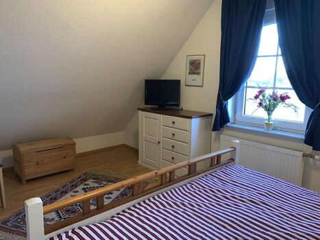 Doppelbett 1,80 x 2,00m, Kommode, Leselampe am Bett, Fliegengitter