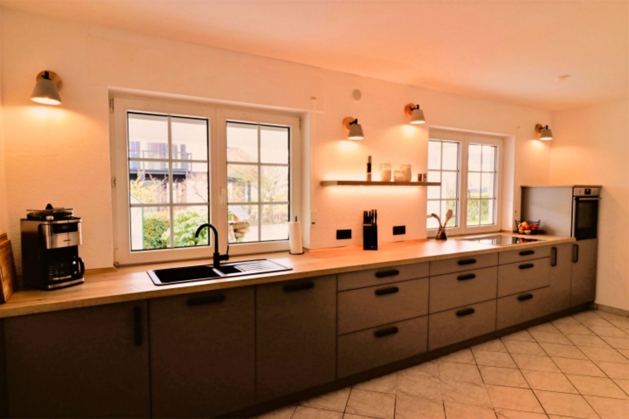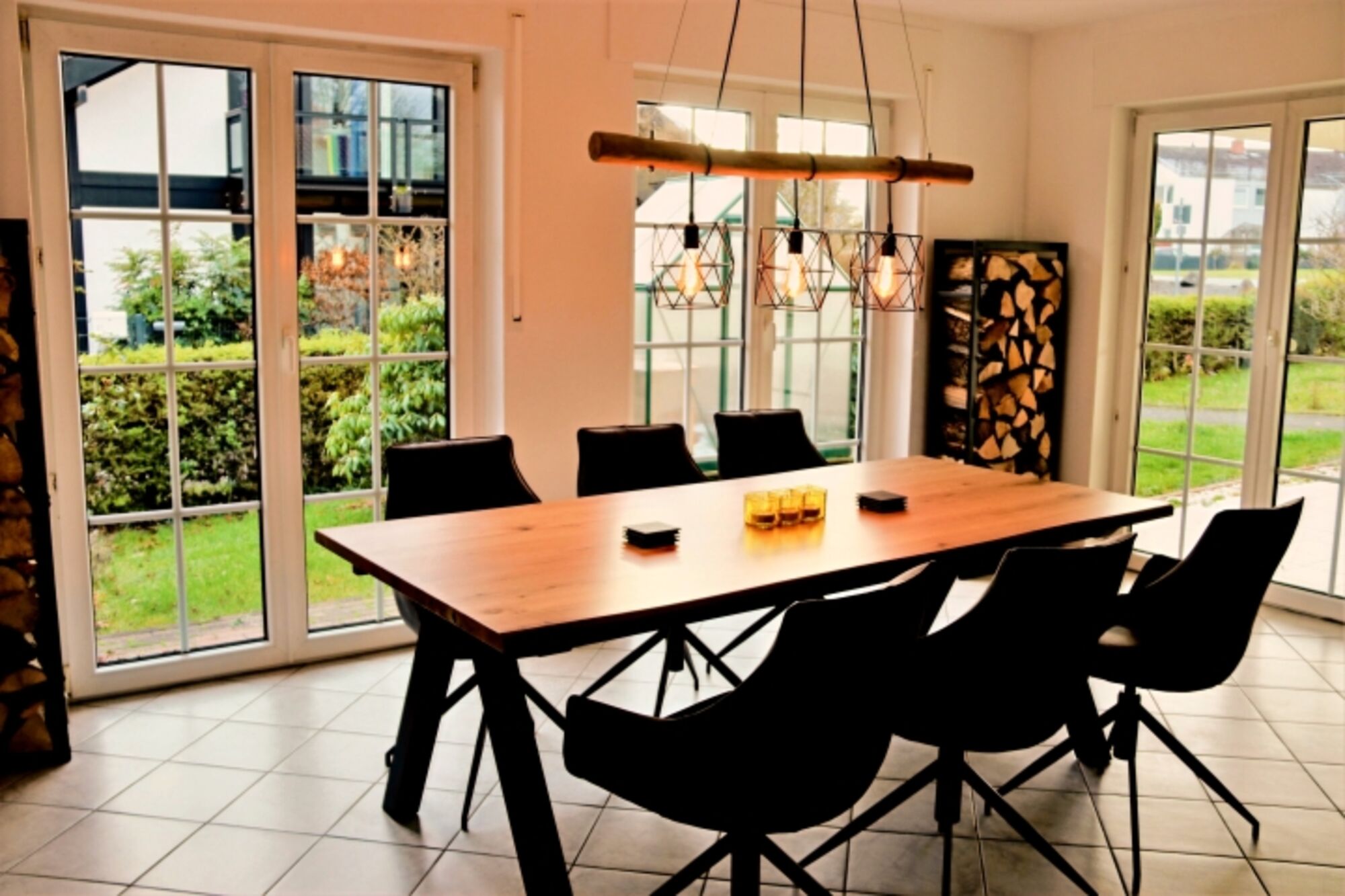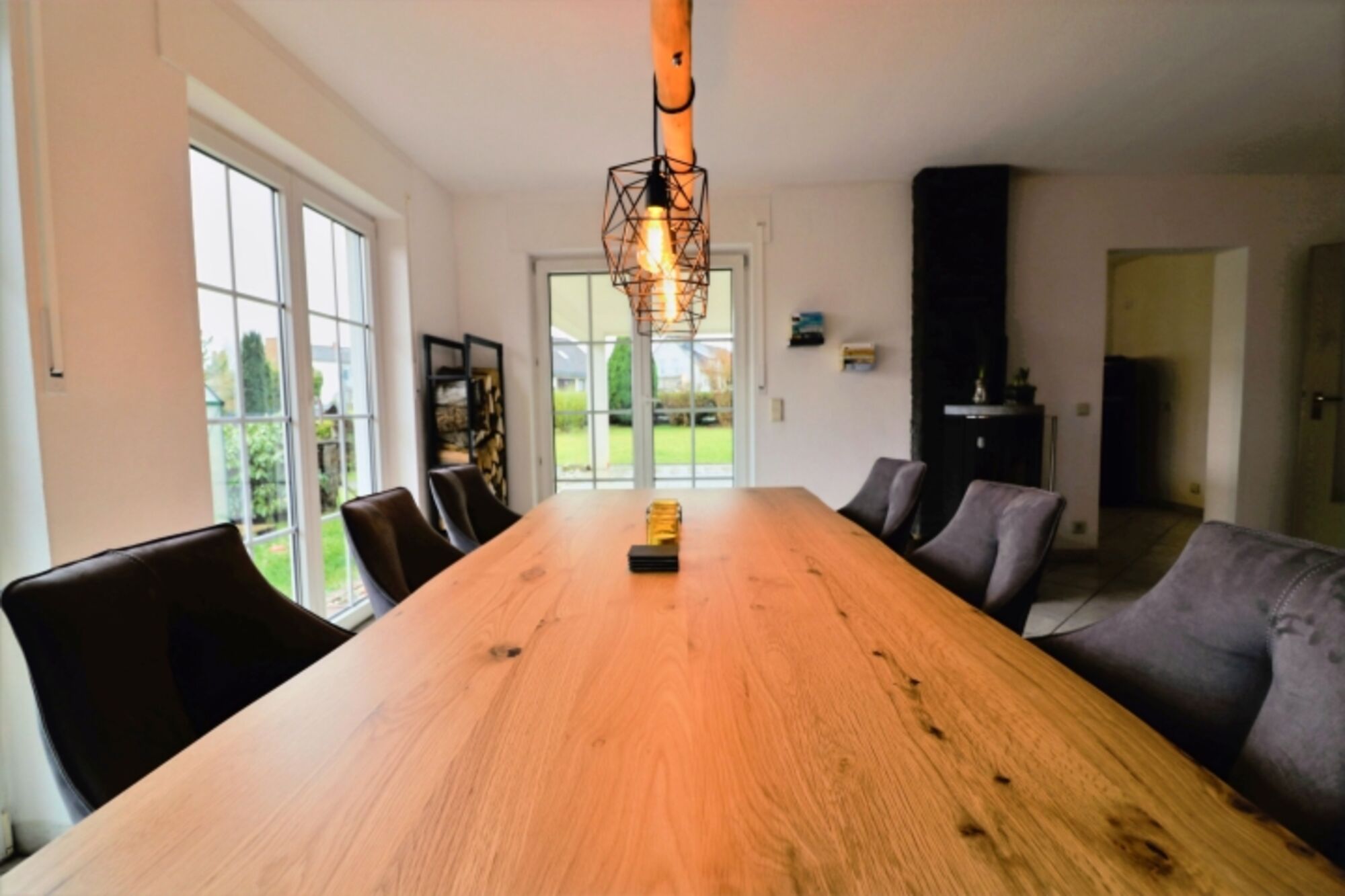 Ihnen gefällt die Vulkaneifel besonders gut und Sie suchen noch eine schöne Unterkunft, in der man sich wie zu Hause fühlen kann? Dann schauen Sie sich doch mal unsere neu eingerichtete Ferienwohnung für maximal 6 Personen an. Die modern eingerichtete Erdgeschosswohnung mit rund 110 qm verfügt über ein geräumiges Wohnzimmer mit einer gemütlichen Wohnlandschaft. Von dort aus kann man einen schönen Filmeabend mit Kaminblick genießen. Der Essplatz ist umgeben von großen bodentiefen Fenstern, sodass das Wohnzimmer tagsüber mit schönem Tageslicht beleuchtet wird. Die Küche mit offenem Zugang zum Wohnbereich lädt zum gemeinsamen Kochen ein. Mit dem induktionsfähigen Kochfeld und dem Blick nach draußen macht das Kochen doch viel mehr Spaß. Von einem langen Flur abgehend, befinden sich die drei Schlafzimmer. Zwei der drei Schlafzimmer verfügen über jeweils ein Doppelbett (1,80m), das dritte Schlafzimmer ist mit zwei 90cm Betten ausgestattet, die wahlweise zusammen geschoben werden können. Das kleinere Bad verfügt über eine Dusche mit Toilette und Waschbecken. Das große geräumige Bad schließt eine Dusche mit Badewanne, zwei Waschbecken und einer Toilette ein. Der große Garten mit gefliester Terrasse und großer Rasenfläche bietet viel Platz zum Spielen und Entspannen. Hier kann man es sich im Sommer, aber auch im Winter gut gehen lassen.