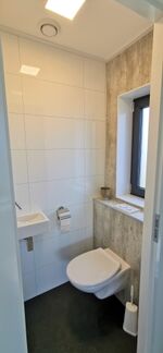 Das separate Gäste-WC mit Waschbecken liegt am Eingang rechts.