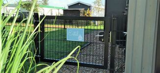 Hinter dem Deich befindet sich ein kleines Waldstück, sowie ein Park für den Hundespaziergang