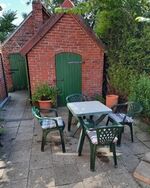 Liegewiese, Gartenmöbel, Kohlegrill, Hof