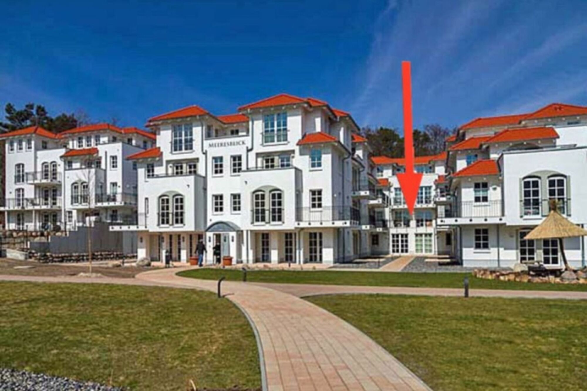 Die moderne Nichtraucher-Ferienwohnung Seestern liegt im Erdgeschoss der Residenz Haus Meeresblick, direkt in den Dünen von Baabe – ideal für einen entspannten Urlaub mit Hund an der Ostsee.