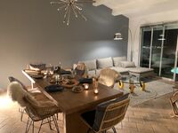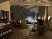 1. Das Haus (130 qm) ist in natürlichem Holz und elegantem Stil mit warmen Farben, schönen hochwertigen Materialien und gemütlicher, stimmungsvoller Beleuchtung. 8-9 Personen ( 4 Franz. Doppelbetten und eine Schlafcouch) können hier sehr bequem übernachten.