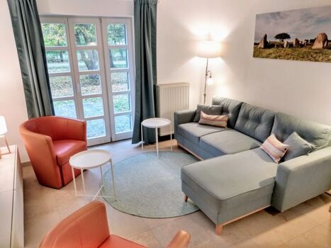Appartement mit Terrasse, Grünfläche und Wald, hundefreundlicher Strand