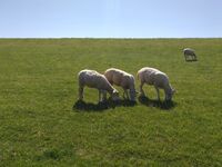 Bei schönem Wetter: direkt am Deich gelegen mit angrenzender Jaderennbahn und dahinter gelegenes Freizeitgelände mit Wander- und Reitwegen. Hinter dem Deich haben Sie direkt den Zugang zum Strand, der in verschiedene Abschnitte unterteilt ist, naturnaher Strand (FKK), Hundestrand und Hooksieler Strand (Textil).
