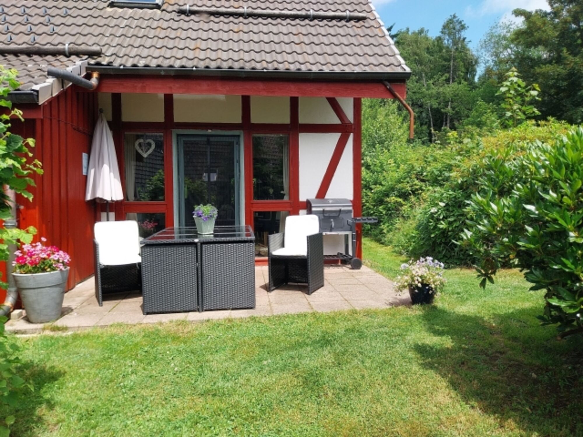 Zu jedem Haus gehört eine Terrasse. Kostenlose Parkmöglichkeit befindet sich direkt am Haus.