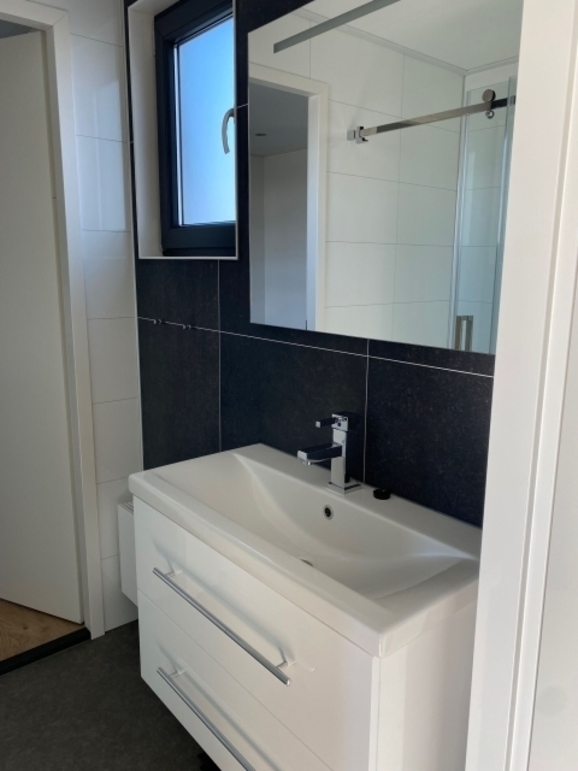 Im 70m² großen Ferienchalet erwartet Euch außerdem ein modernes Tageslichtbad mit Rainshower-Dusche, begehbar von beiden Schlafzimmern. Auf dem Flur befindet sich eine zusätzliche Gästetoilette. Der große, helle Wohnbereich ist ausgestattet mit Esstisch und Stühlen, einem gemütlichen Sofa, schwenkbarem TV, Elektro-Kamin sowie zwei gemütlichen Sesseln. Smart-TV und Highspeed-Internet runden das Multi-Media Angebot ab. Die voll ausgestattete Küche ist in den Wohnbereich integriert.