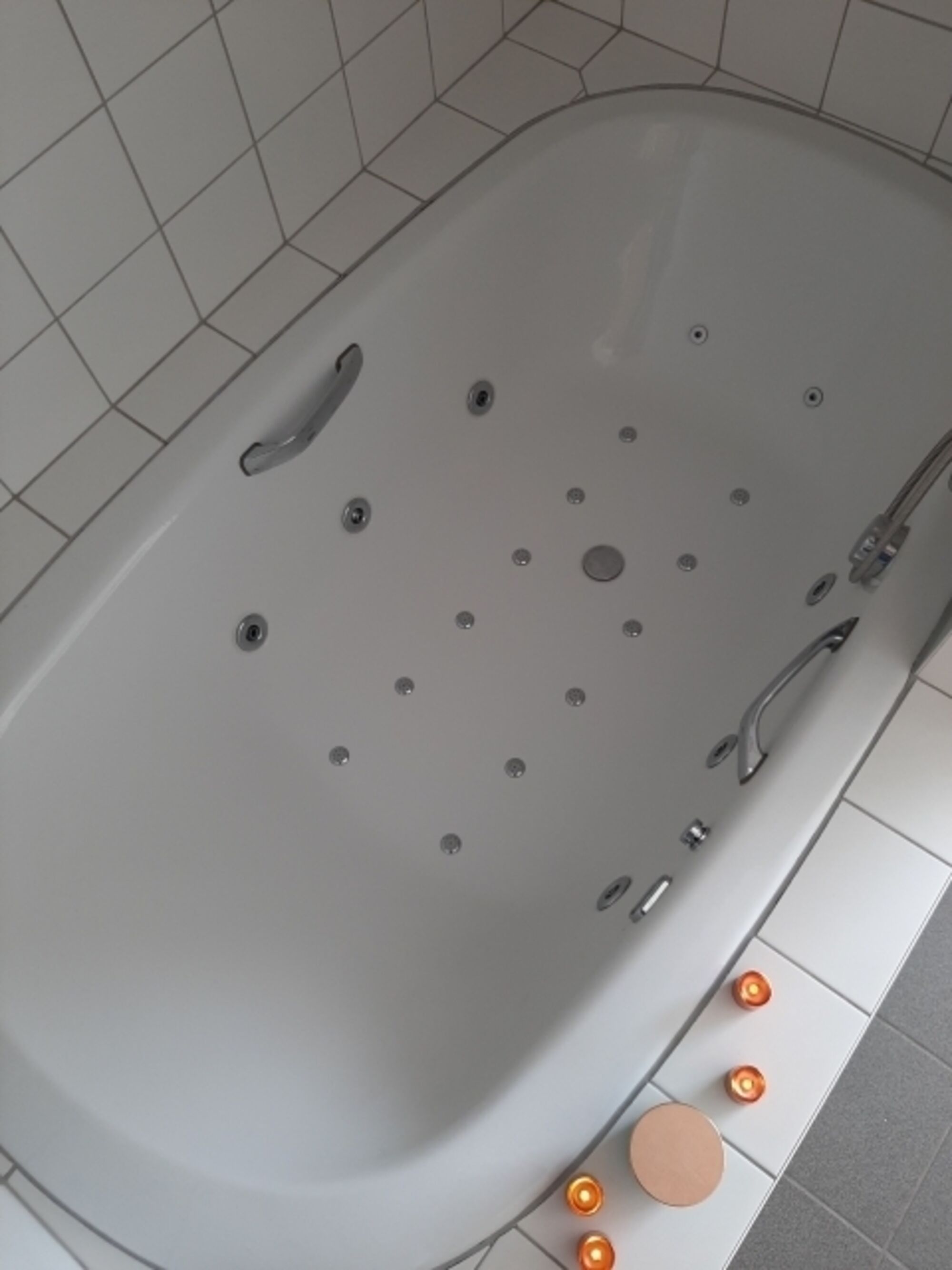 Bad mit Dusche,Whirpoolwanne, WC,Fön,Kosmetikspiegel