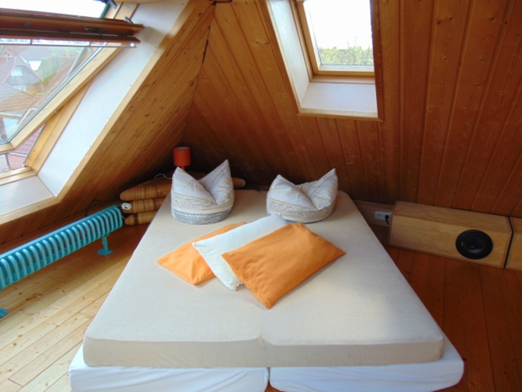 Der Spitzboden mit großen Dachfenstern ist ein wunderschöner Raum zum Spielen und Relaxen.