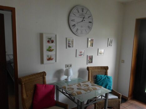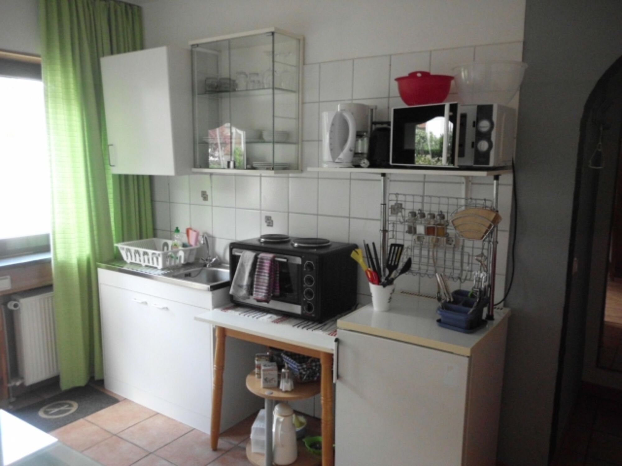 2-Platten Herd, Kühlschrank mit Gefrierfach, Eierkocher, Korkenzieher / Flaschenöffner, Geschirrhandtücher, Mülltüten, Essplatz in der Küche