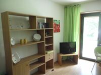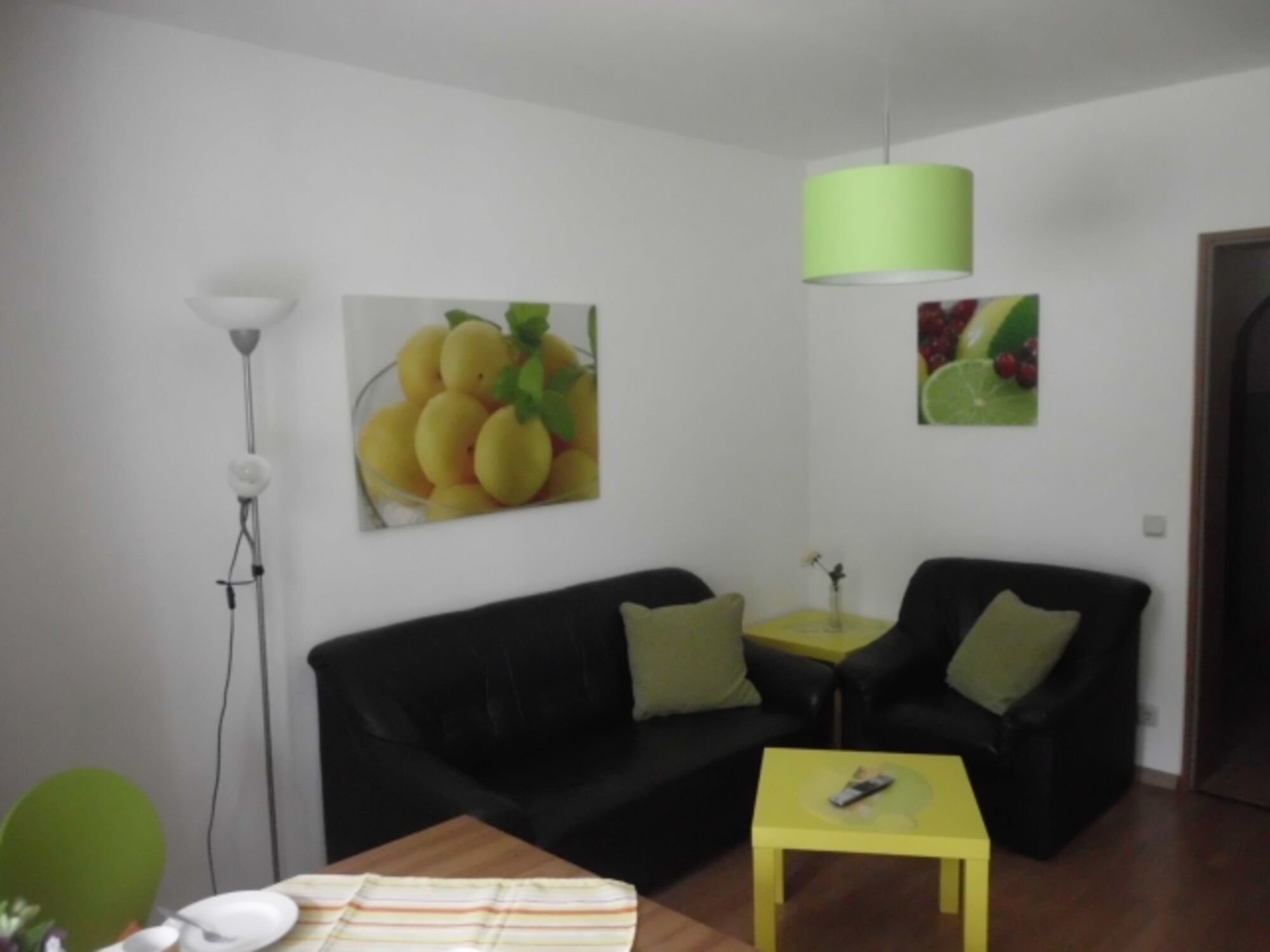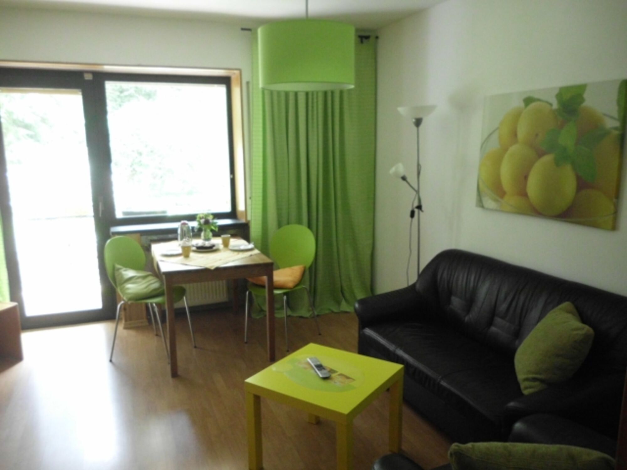 * Wohnzimmer mit Sofaecke, Couchtisch und TV - von dort aus Ausgang auf den Balkon