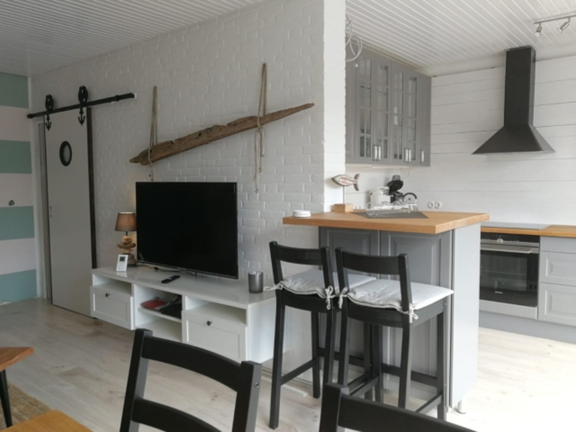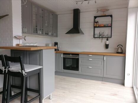 Das neu renovierte Ferienhaus ist in den Wohlfühlfarben Schilfgrün, Sand und Grau gehalten. Das Gesamtkonzept hat das Flair eines Strandhauses mit altem Holz, Strandgut und viele Gräser im Aussenbereich.