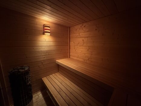 Neu ist unsere Außensauna, die sich in einer gemütlichen Blockhütte im Garten befindet und Ihnen zusätzliche Entspannung bietet. Die Nutzung der Sauna ist möglich, der Stromverbrauch wird jedoch separat mit € 0,50 pro kWh berechnet.