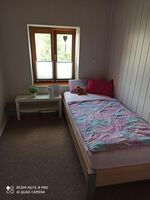 Das Haus verfügt über ein Schlafzimmer mit Doppelbett, dass als Verbindungszimmer zwischen Wohnzimmer und Küche liegt, sowie ein kleines Schlafzimmer mit Einzelbett.