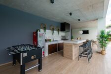 In der geräumigen Küche können Sie Ihre Lieblingsgerichte zubereiten und entweder drinnen oder auf der Terrasse bei Sonnenuntergang speisen. Das 4.000 m² große Grundstück bietet zahlreiche Aktivitäten: Darts, Tischfußball, Trampolin und Volleyball – perfekt für den Familienspaß. Gegen Aufpreis können 3 klassische Fahrräder und 1 E-Bike gemietet werden (10 € pro Tag und Fahrrad).