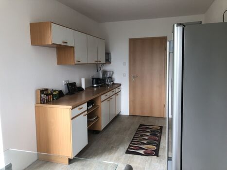 4-Platten Herd, Cerankochfeld, Dunstabzugshaube, Gefrierschrank, Eismaschine, Korkenzieher / Flaschenöffner, Gewürze (Salz, Pfeffer, Zucker), Geschirrhandtücher, Mülltüten, Essplatz in der Küche